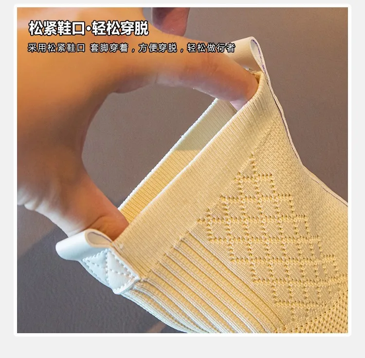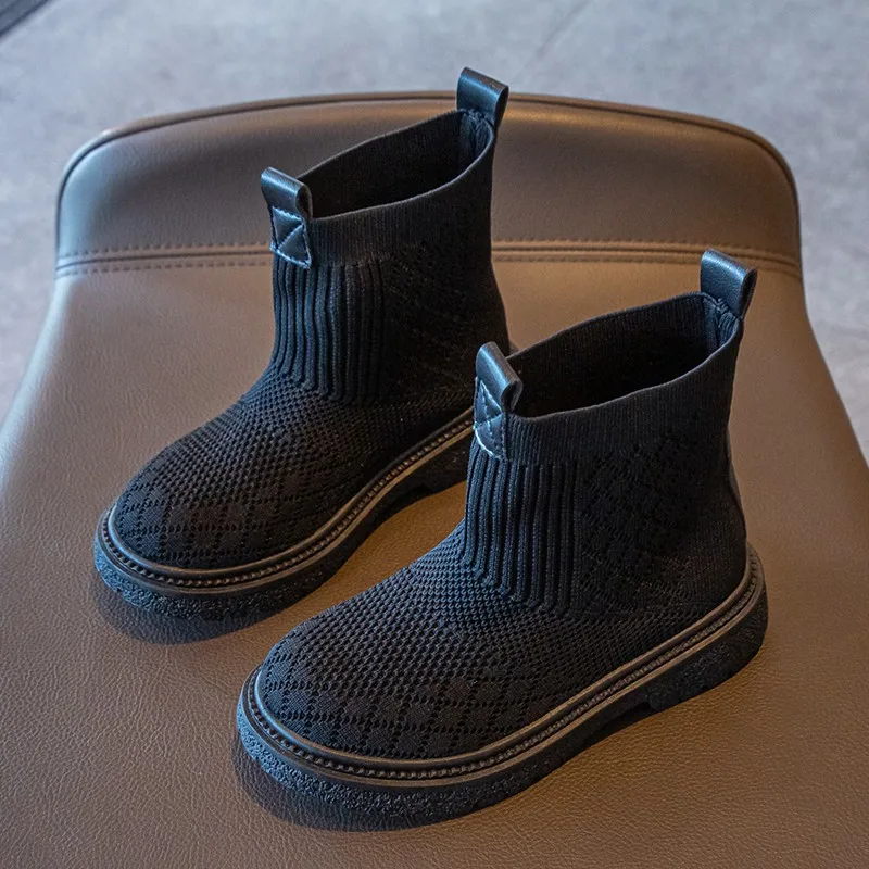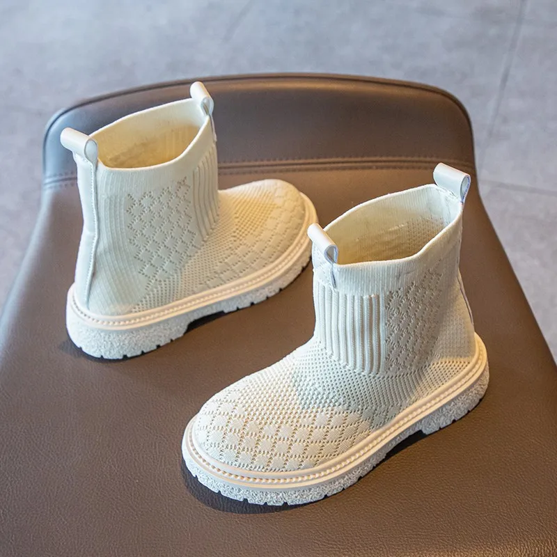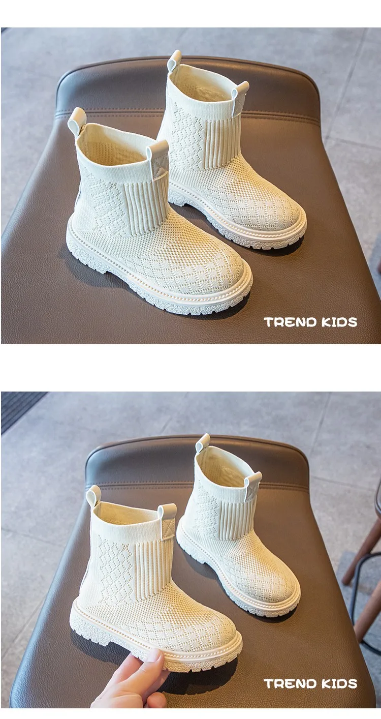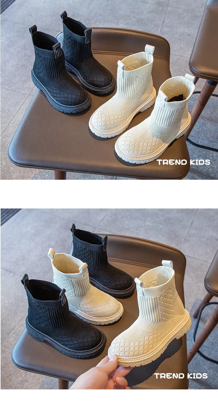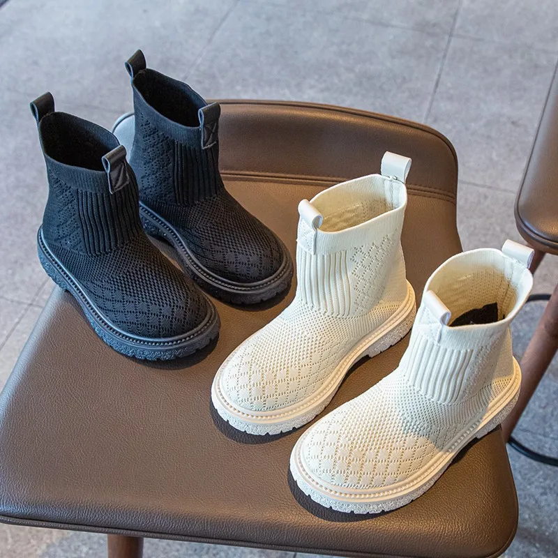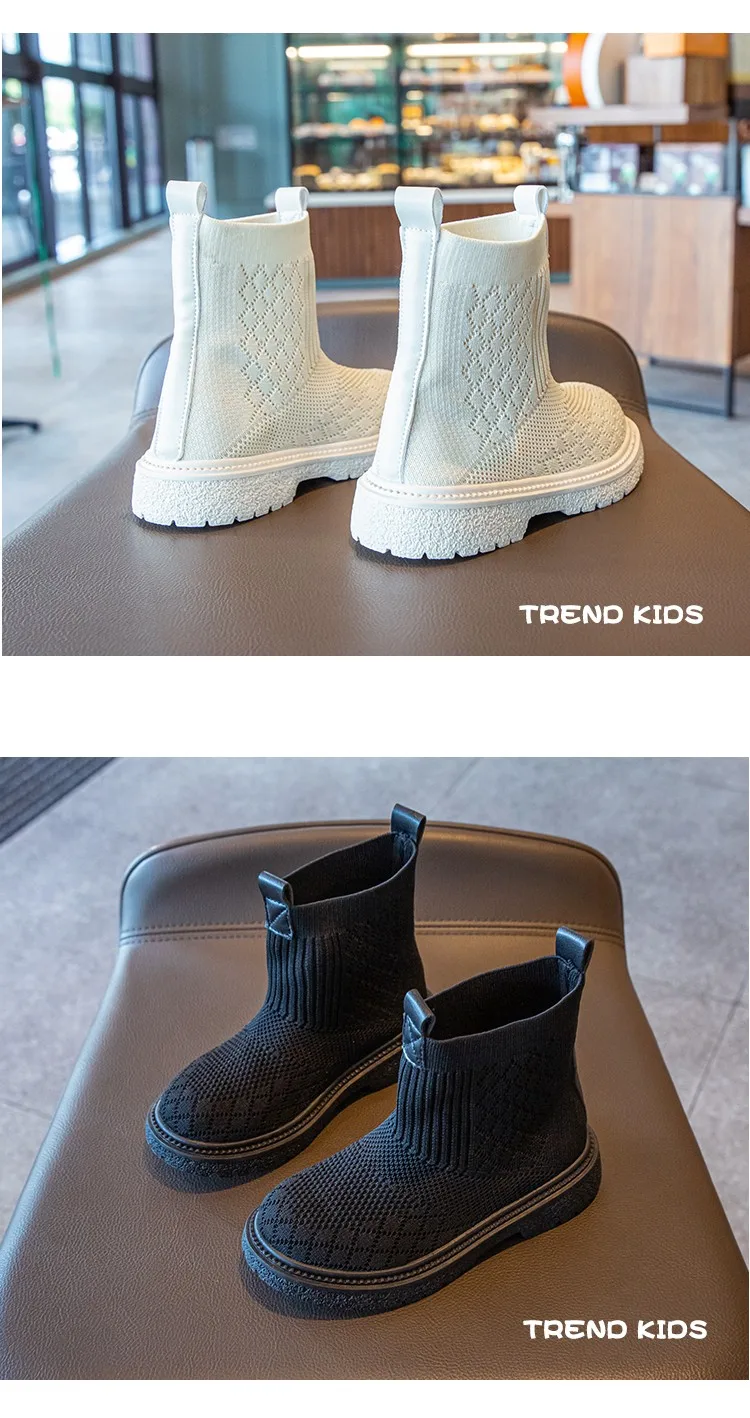 Ботинки-Носки детские, сетчатые, черные, белые, Осенние, дышащие, без шнуровки, до середины икры, Размер 27-38