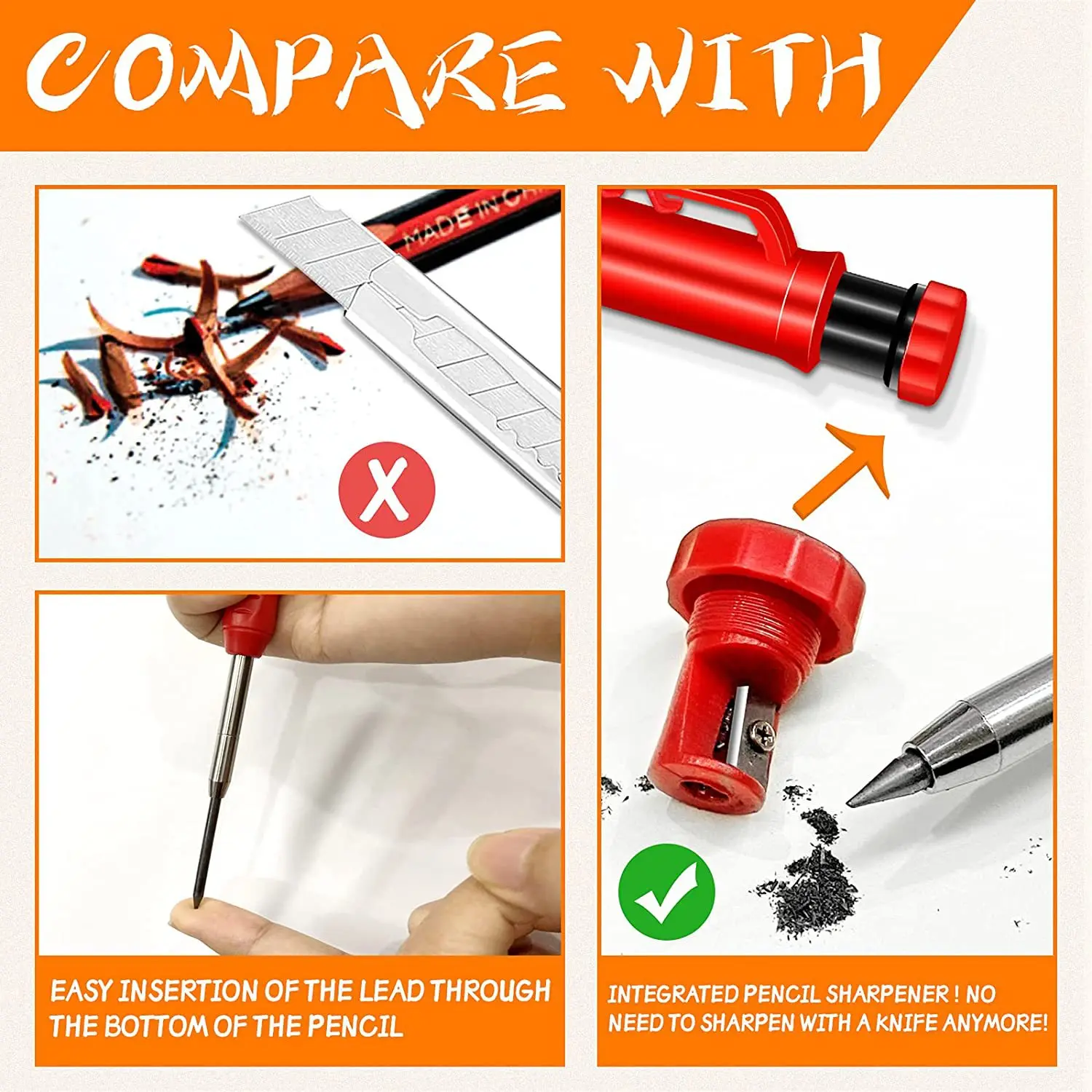 Механический карандаш: карандаш для плотников не выскальзывает из пальцев и повторяющиеся тяги вызывают меньше боли; Дизайн ручки легко крепится к кармане, прост в использовании и не легко теряется, повышение эффективности, подходит для строительства и кирпичной кладки