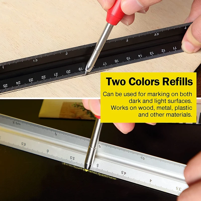 Устройство для изготовления глубоких отверстий: карандаш для плотника с глубоким отверстием разработан с удлиненным наконечником 45 мм в длину, достигая труднодоступных мест, где другие маркер плотника не идут, подходит для маркировки через отверстия или в других плотных областях