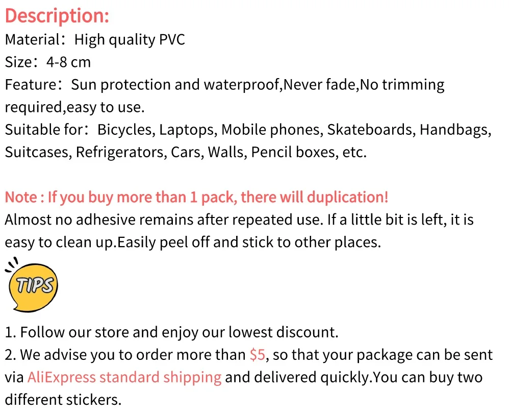 Товар прибыл быстро, через 15 дней. Удовлетворены качеством, каждая наклейка уникальна, в то время как есть различные стили. Продавец отправил в точности 50 наклеек. Я буду заказывать больше.
