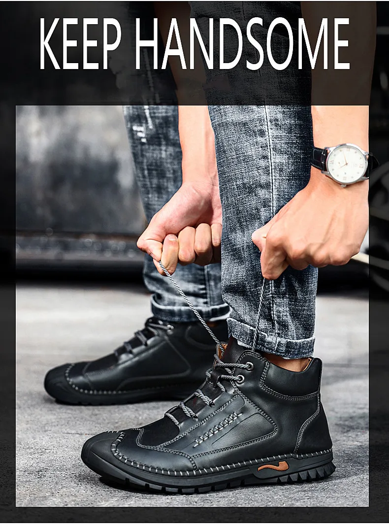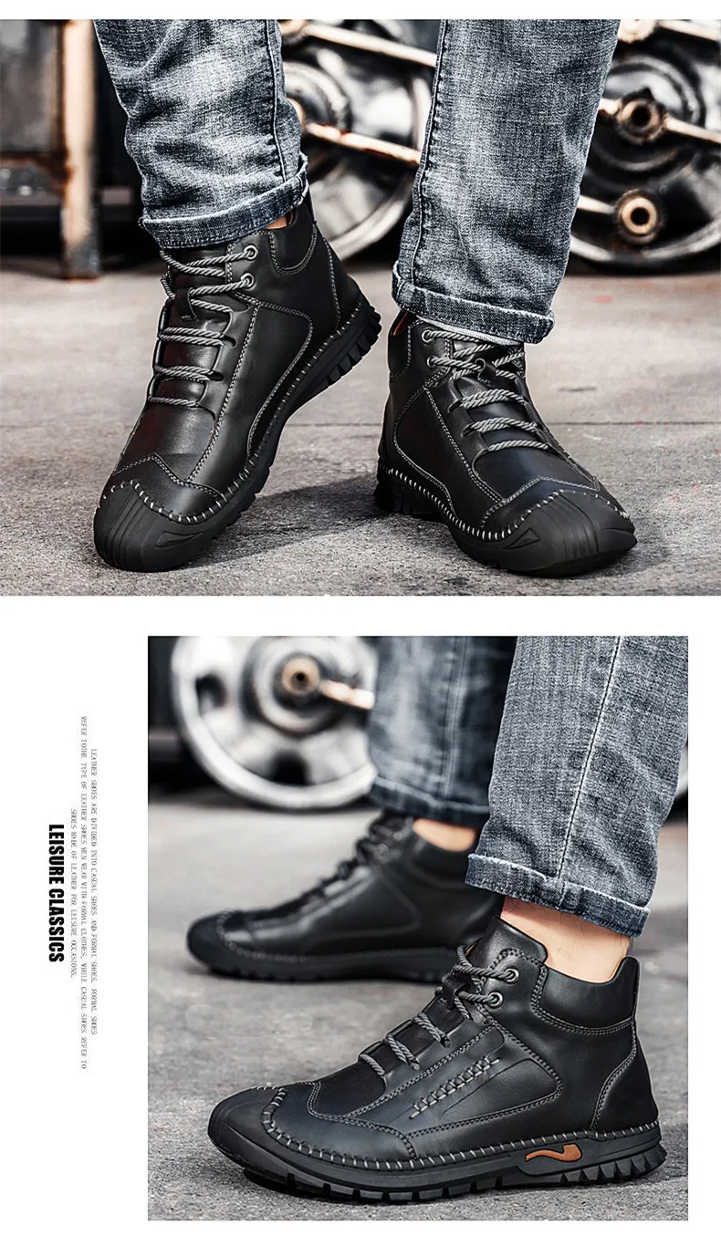 Брендовые зимние мужские ботинки, теплые мужские зимние ботинки, Водонепроницаемые кожаные мужские походные ботинки, уличные кроссовки, мужские рабочие ботинки, мужская обувь