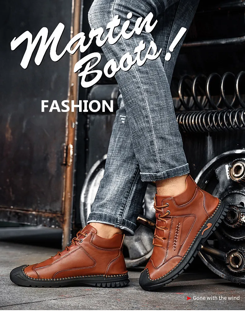Мужские зимние ботинки с ручной строчкой кожаные ботильоны осенние ...