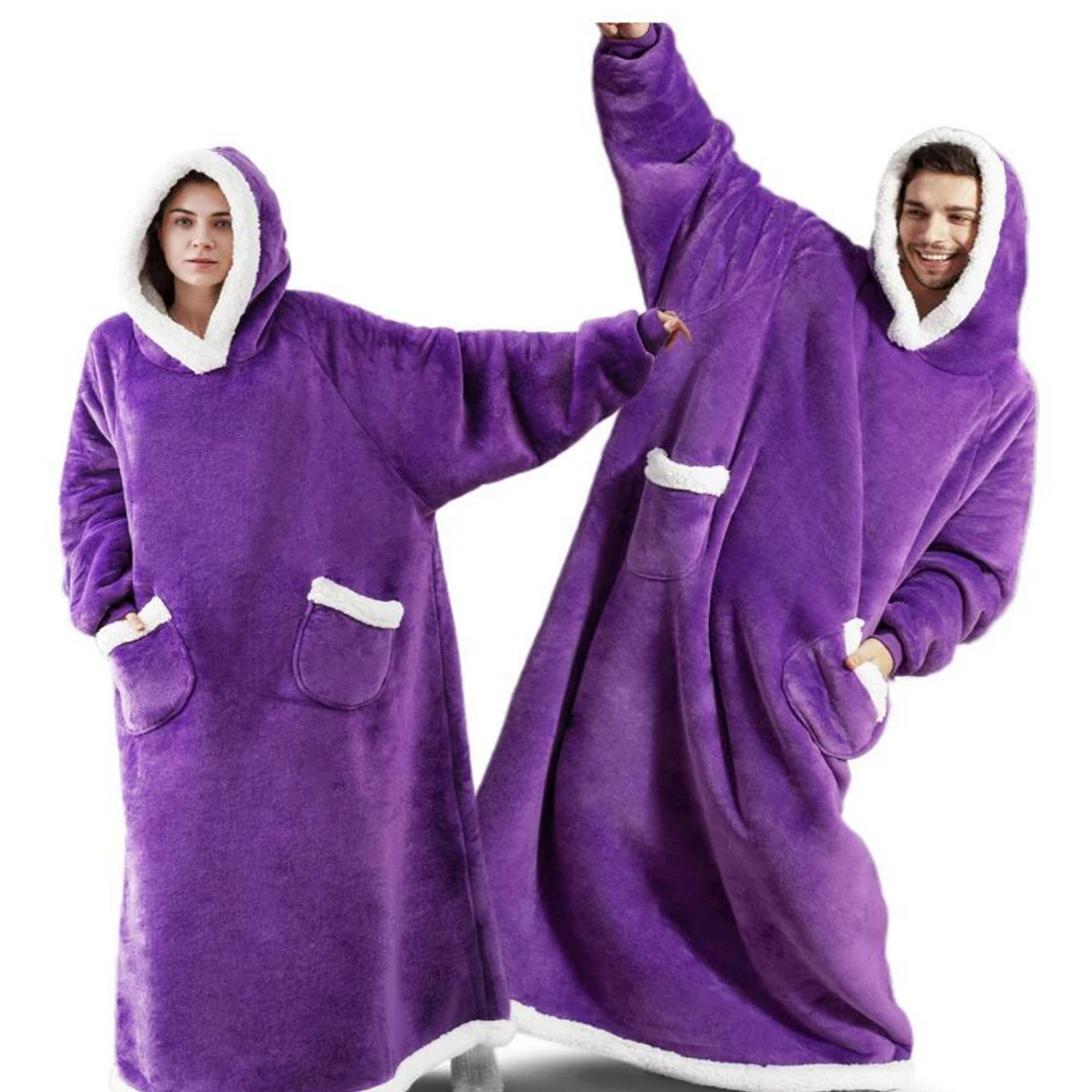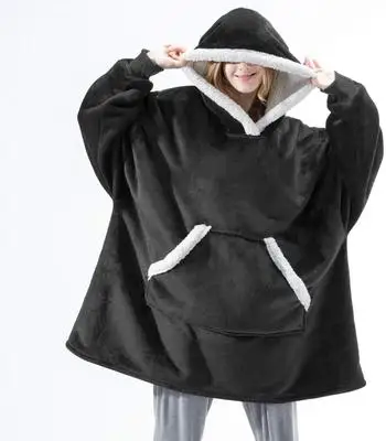 Зимние толстовки большого размера, свитшот, пуловер для мужчин и женщин, гигантское ТВ-одеяло, толстовка, очень длинное фланелевое одеяло с рукавами, толстовки