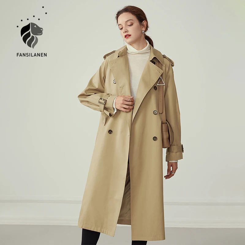 Женский тренчкот с отложным воротником, с поясом и длинным рукавом