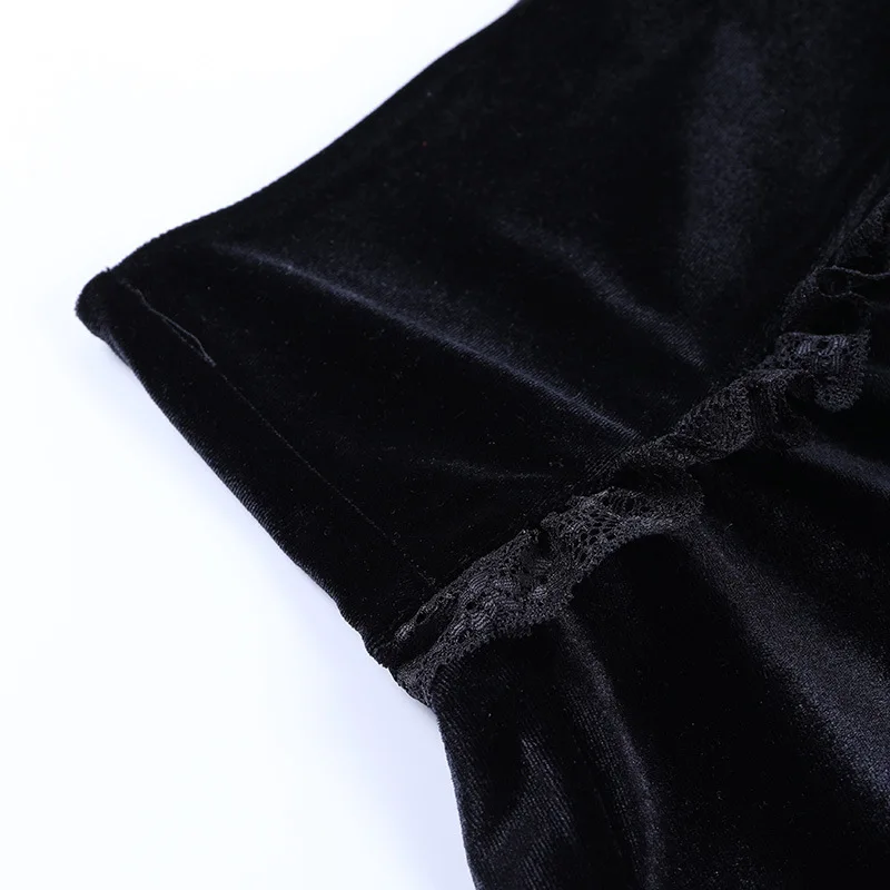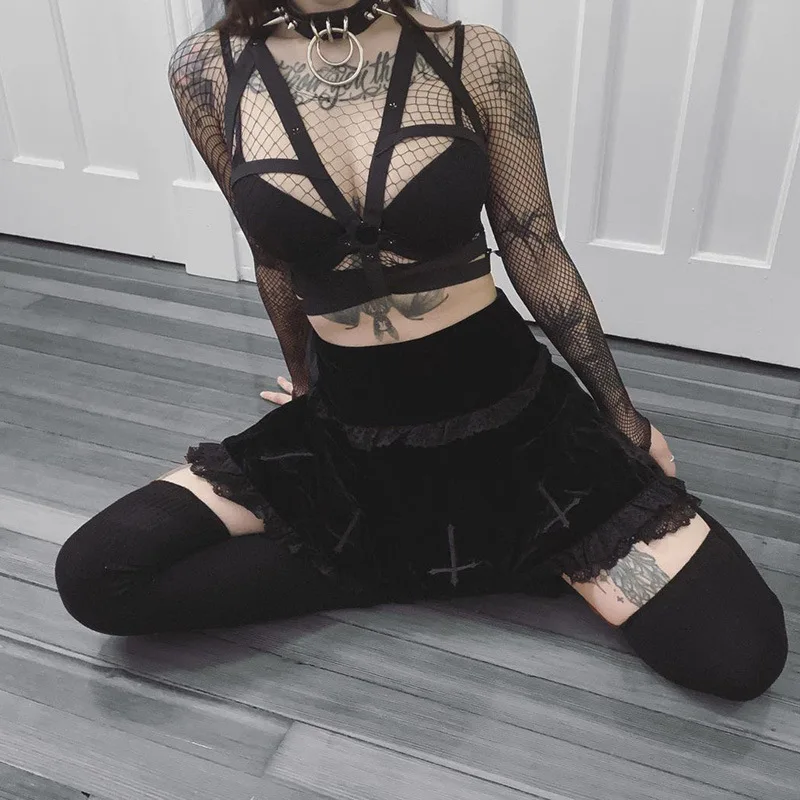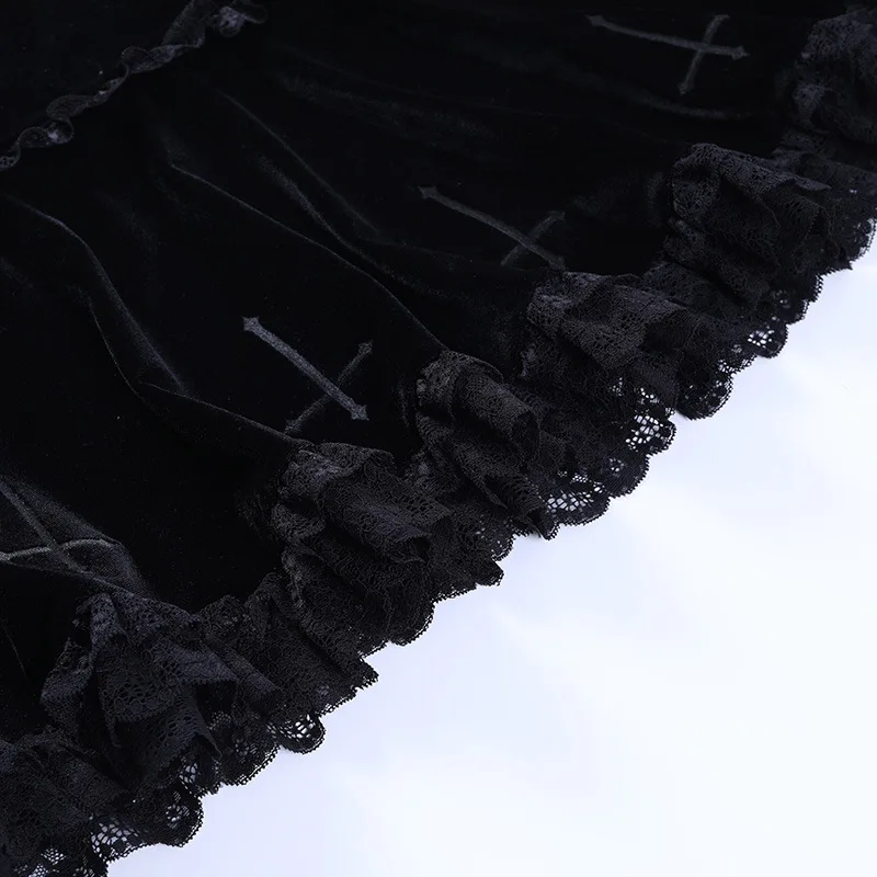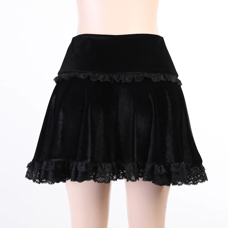 Женская винтажная юбка с вышивкой Goth, черная бархатная трапециевидная юбка с высокой талией, в стиле гранж, в готическом стиле, Y2k
