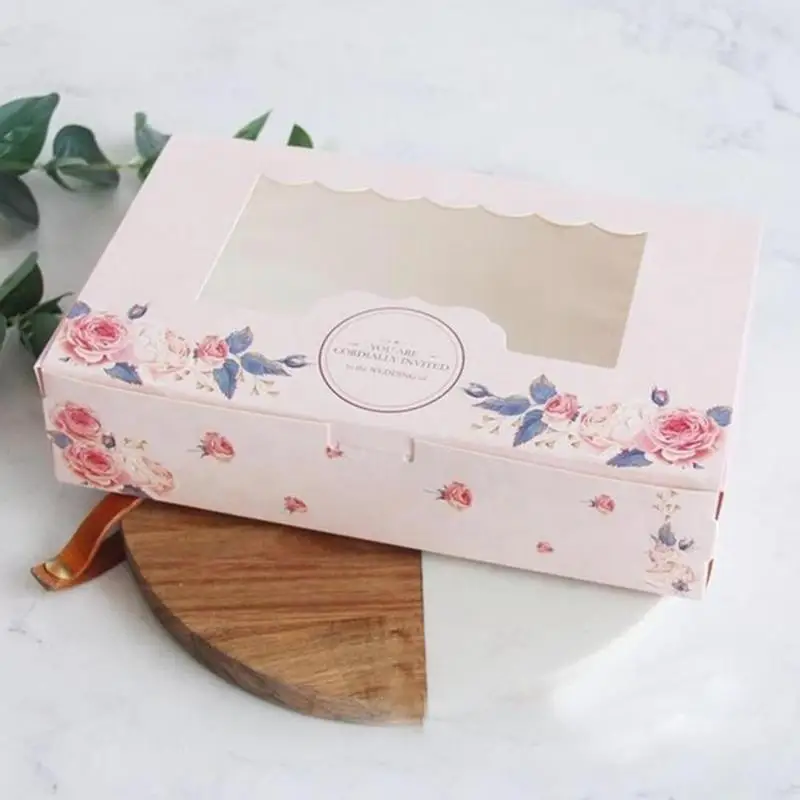 Подарочная коробка с окном, розовый цветок, коробка для кексов, Упа...
