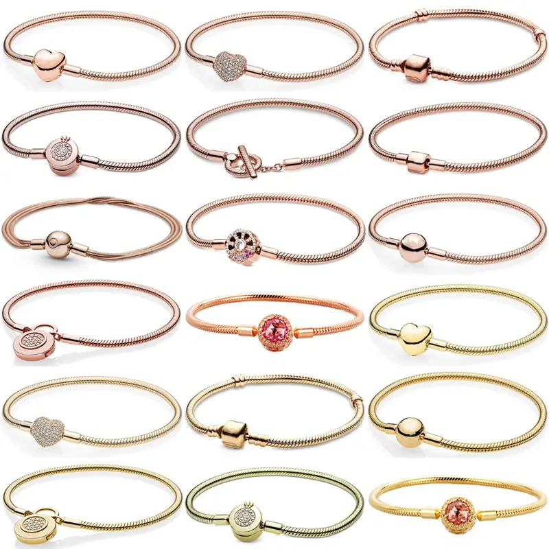 Женский серебряный, розовый, золотой браслет-цепочка со сверкающими шариками в форме сердца, короной, змеей, для популярного браслета, бусины, очаровательные ювелирные изделия для рукоделия