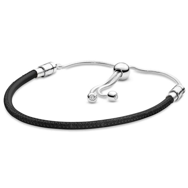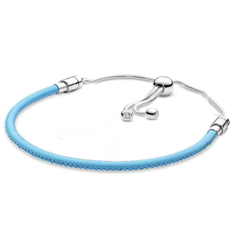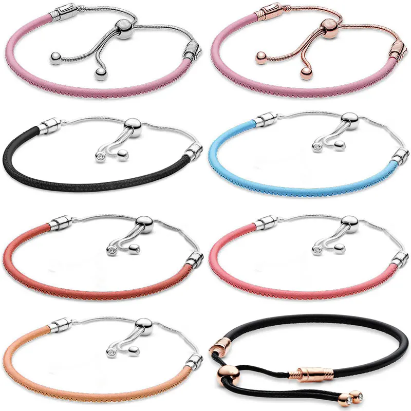 Оригинальный Розовый кожаный браслет S925 с регулируемой скользящей...