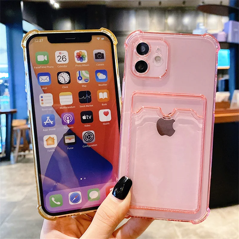 Прозрачный чехол-кошелек для карт, чехол для телефона iPhone 11 12 ...
