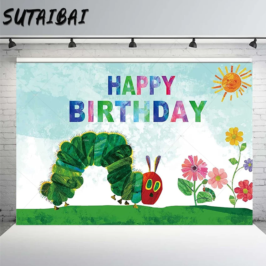 Очень голодный маленький зеленый гусеничный фон для дня рождения насекомые тематический фон для 1-го дня рождения Вечеринка Baby Shower Фотостудия