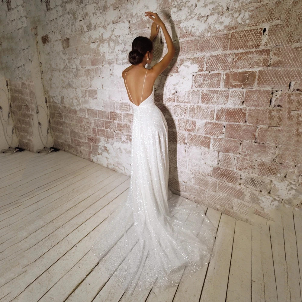 Женское свадебное платье с V-образным вырезом и открытой спиной