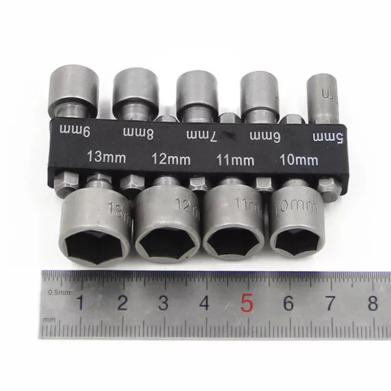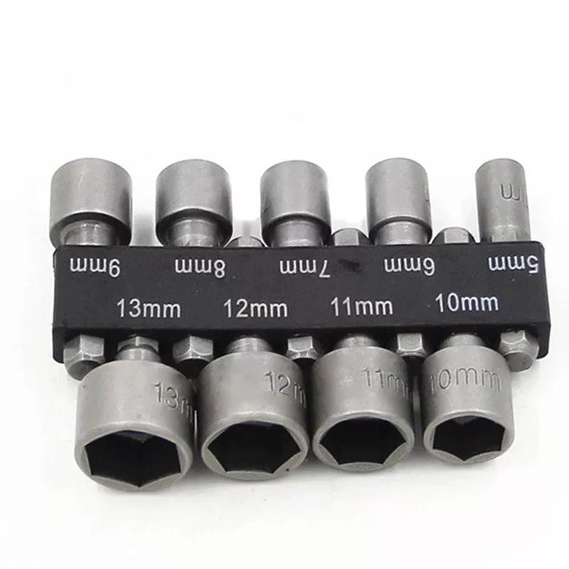 ✅Посылка включает в себя: каждый комплект 9 шт., набор сверл с гаечным приводом, метрический торцевой ключ, винт с шестигранным хвостовиком 1/4 ". Метрика: 5 мм/6 мм/7 мм/8 мм/9 мм/10 мм/11 мм/12 мм/13 мм.