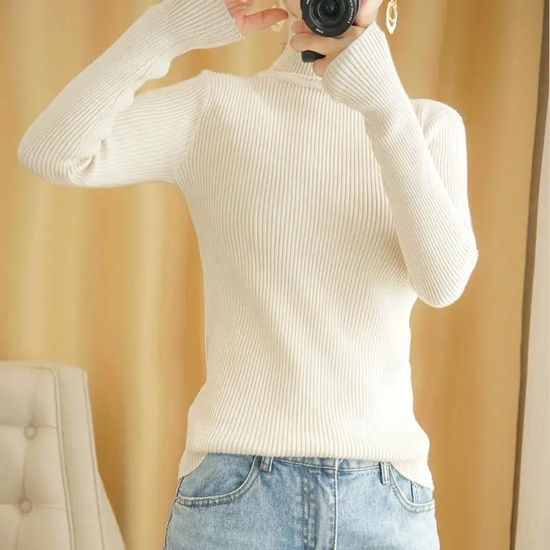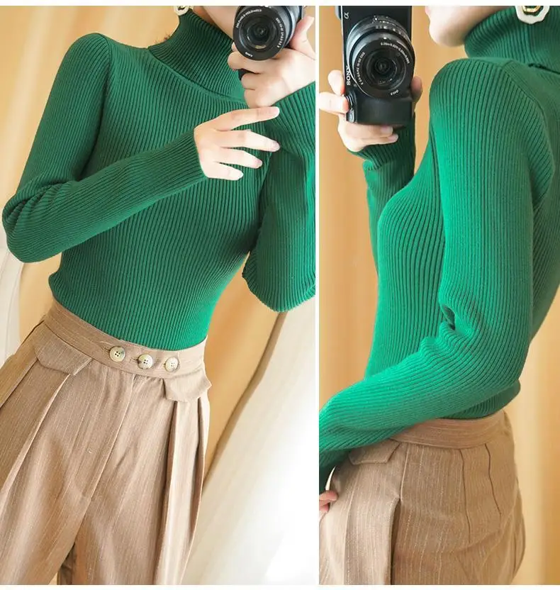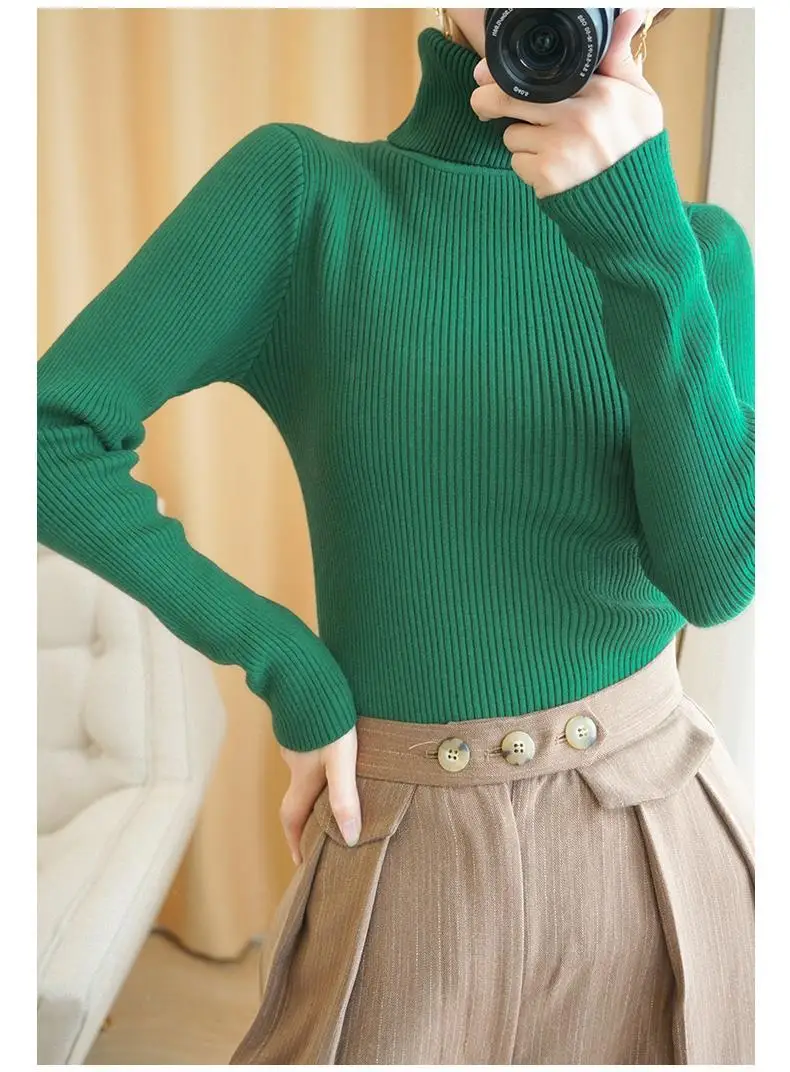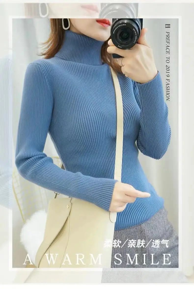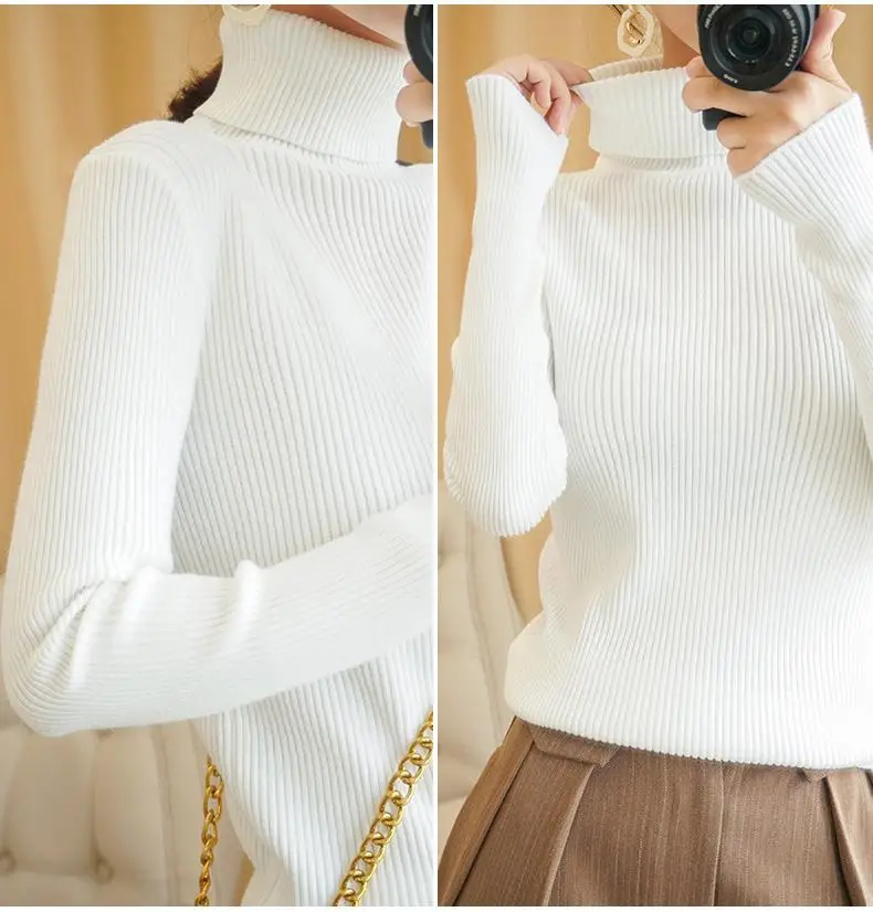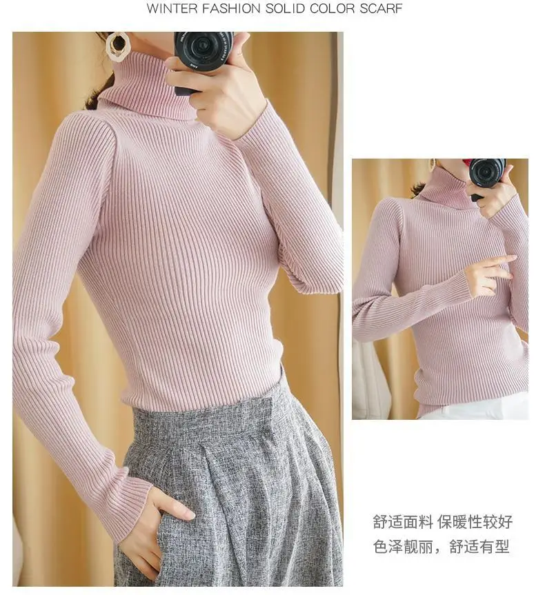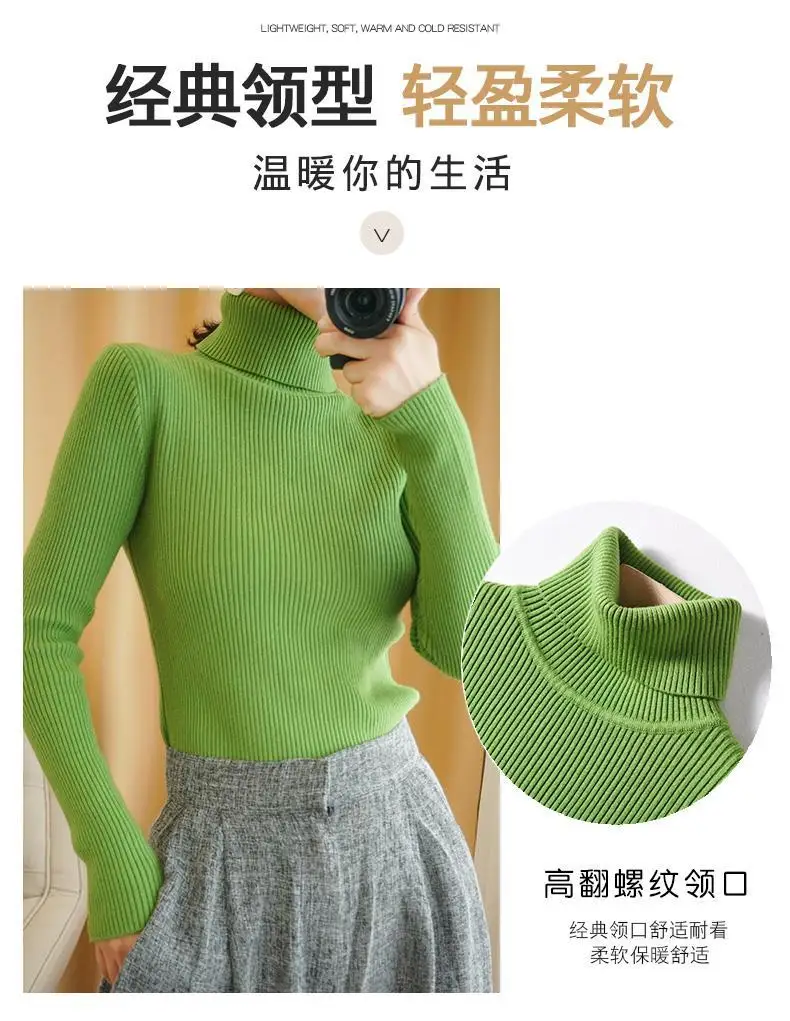Женский свитер оверсайз с высоким воротником, вязаный пуловер с длинным рукавом, джемпер, зимняя теплая одежда 2021, Женский Повседневный базовый однотонный топ