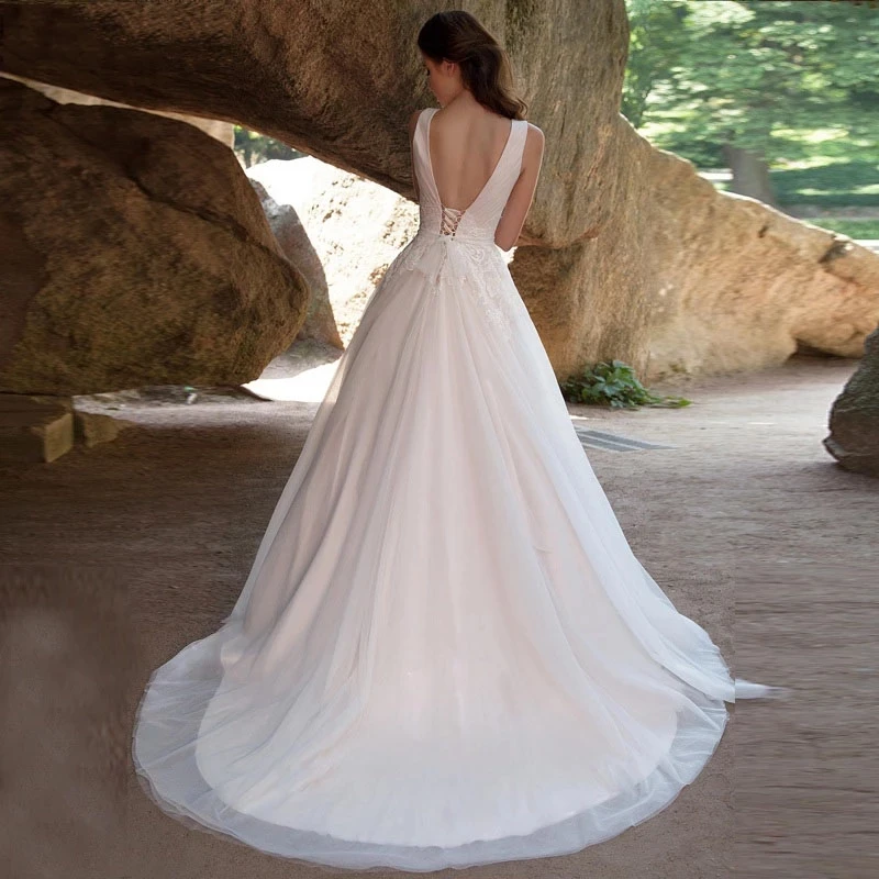 Новинка, скромное свадебное платье HAMMAH для принцессы, Тюлевая аппликация без рукавов, v-образный вырез, длина в пол, ТРАПЕЦИЕВИДНОЕ, для торжественных случаев, лидер продаж