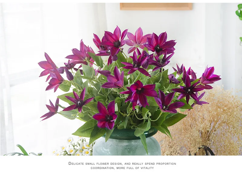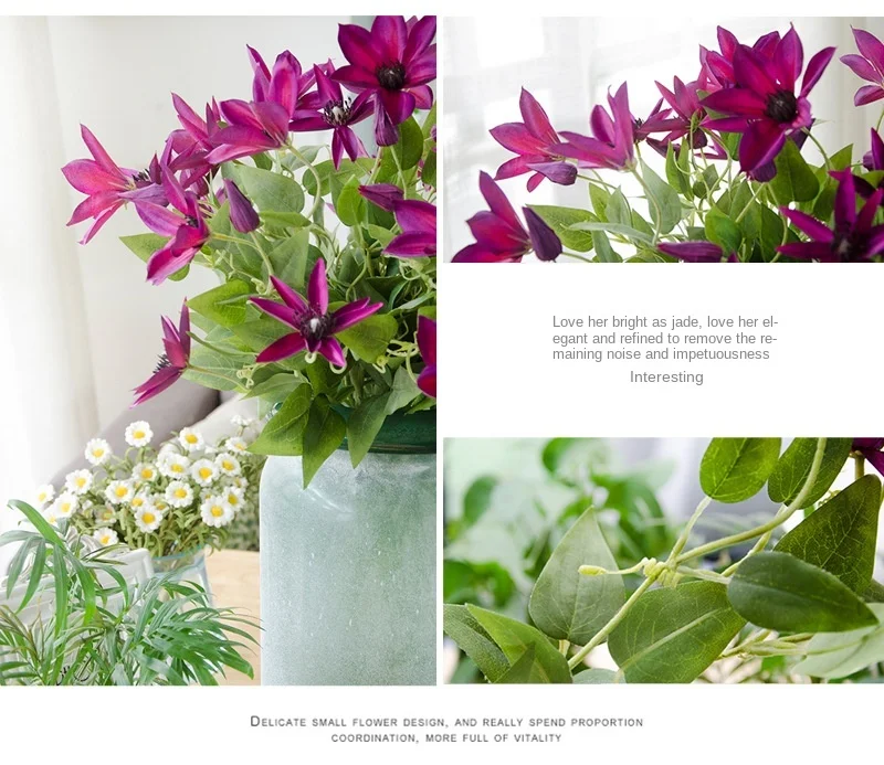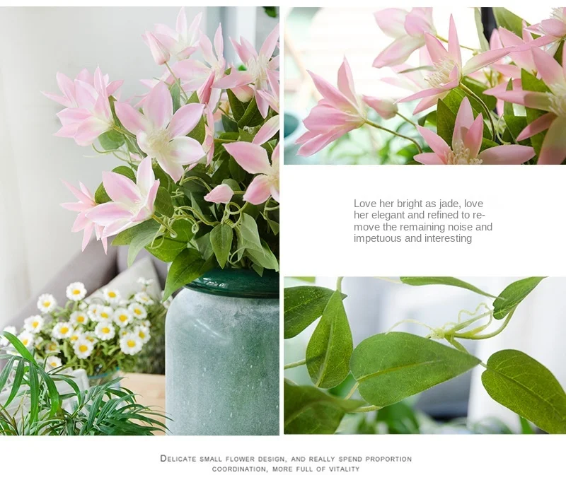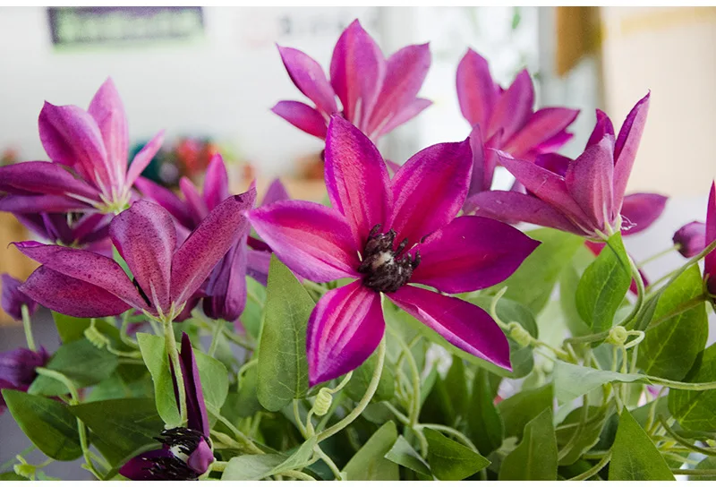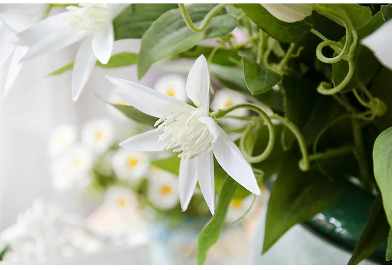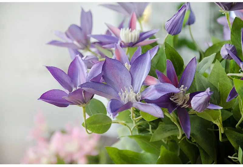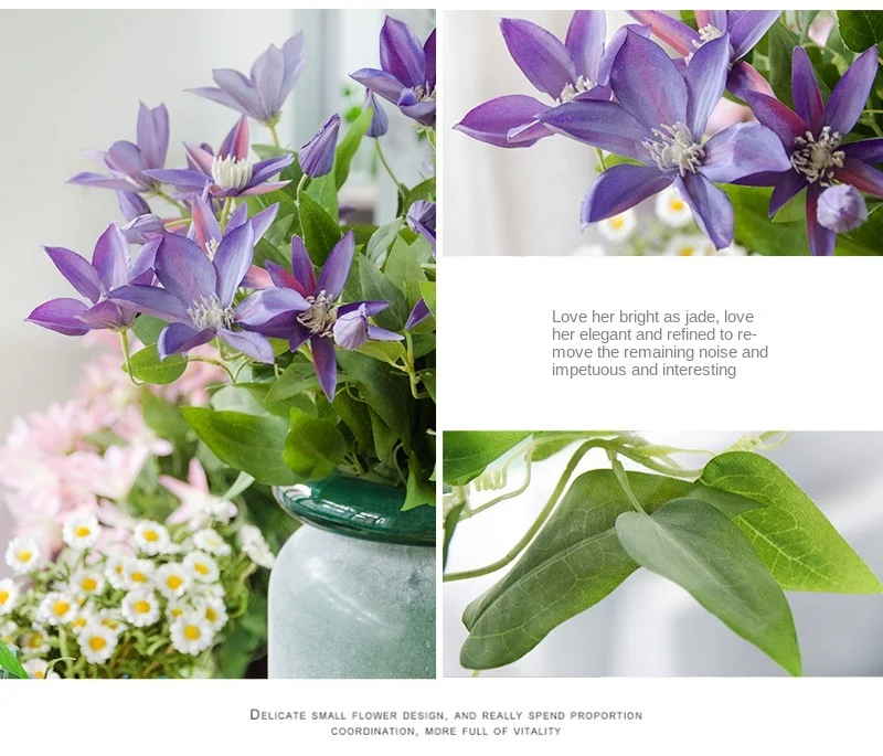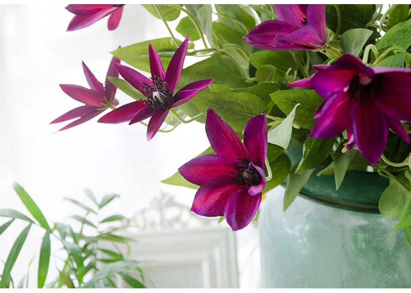 69 см длинные искусственные цветы, разноцветные трехсторонние Клематисы, домашнее украшение, садовые зеленые растения, орнамент