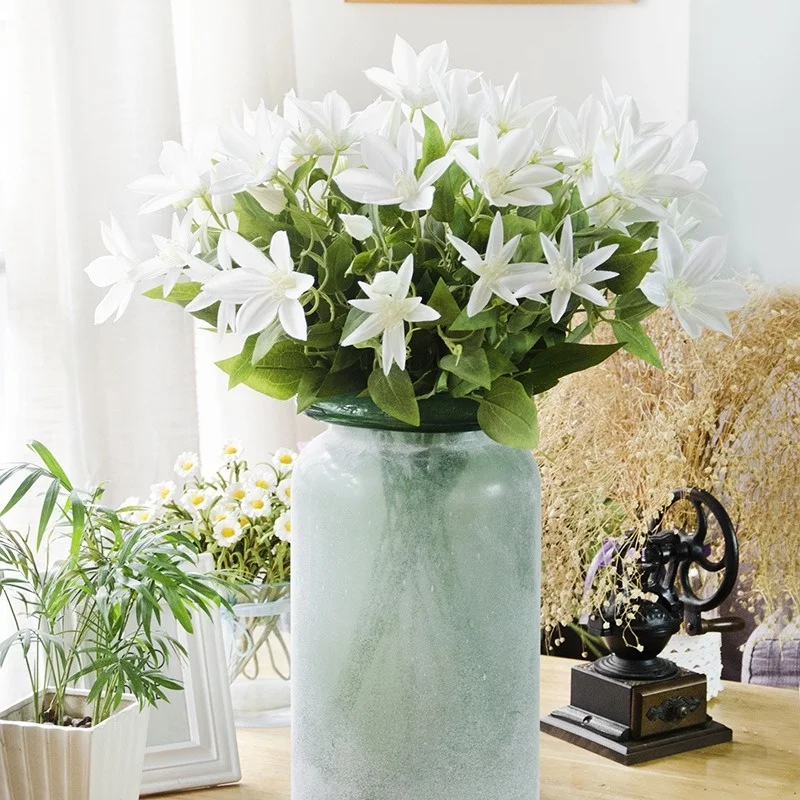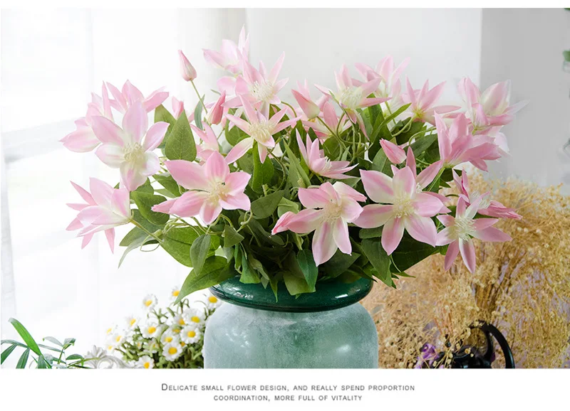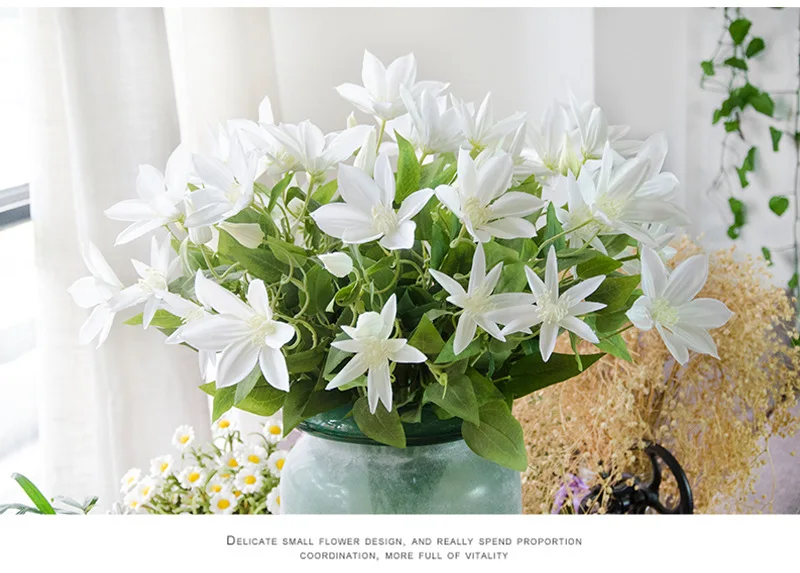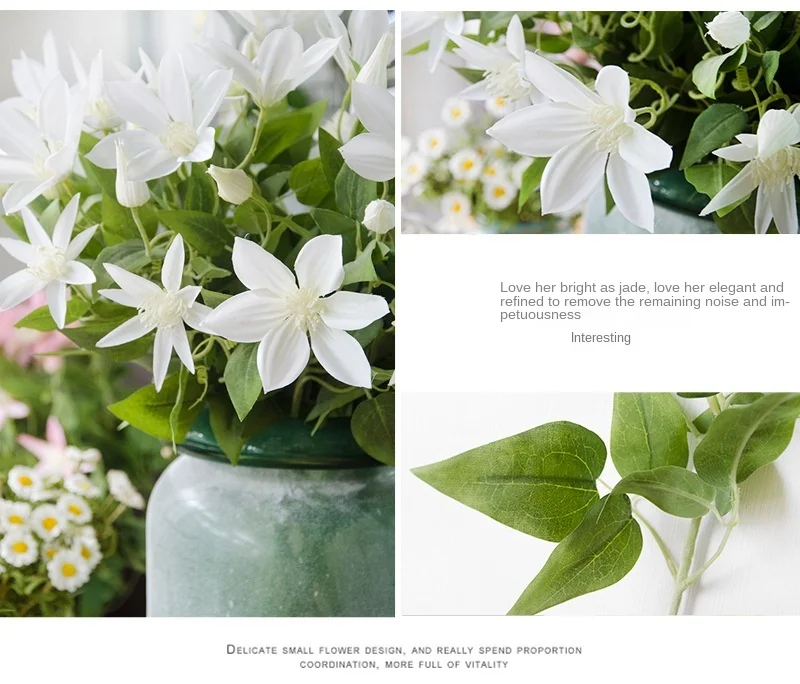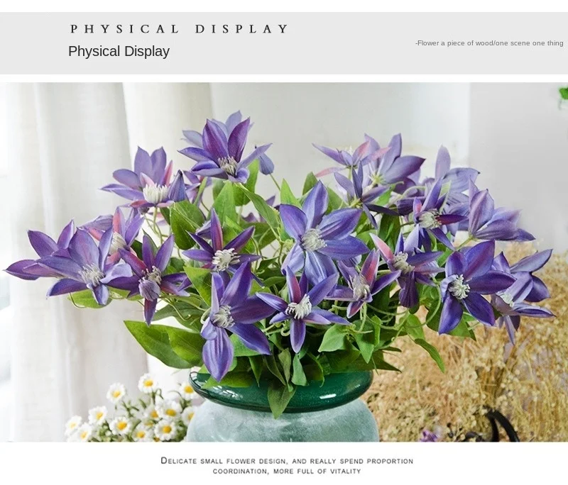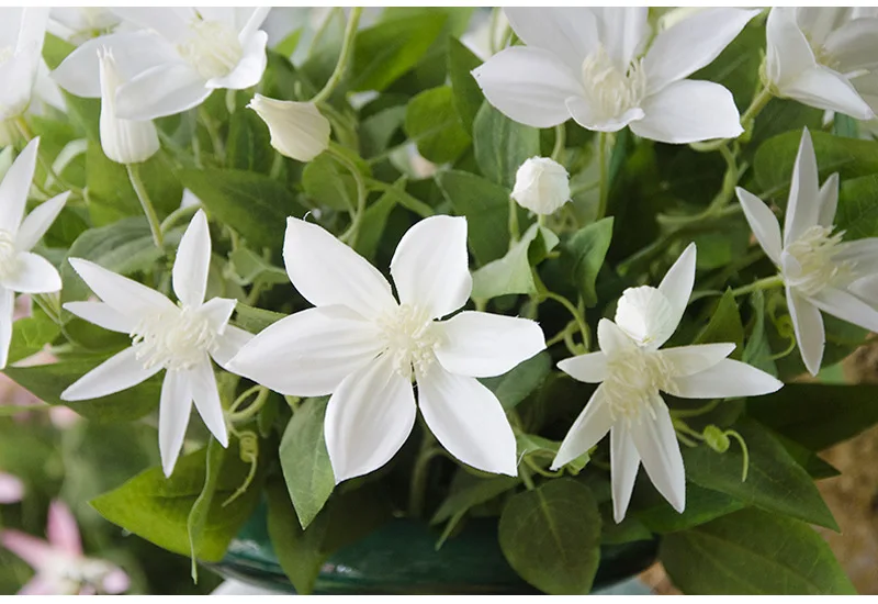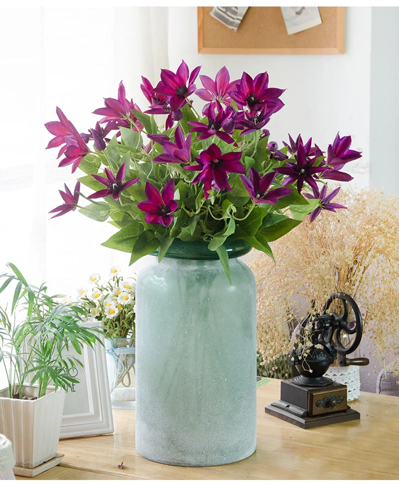 69 см длинные искусственные цветы, разноцветные трехсторонние Клематисы, домашнее украшение, садовые зеленые растения, орнамент