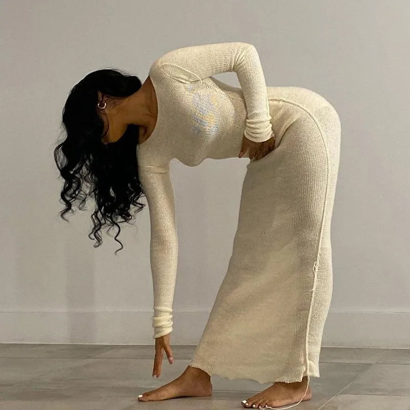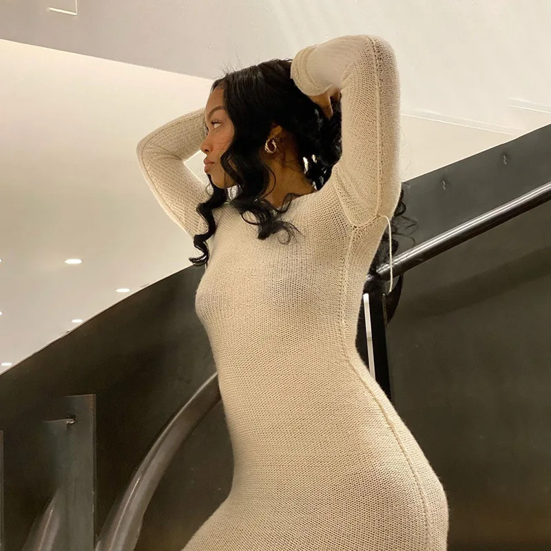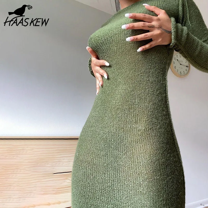 Трикотажные облегающие платья HAASKEW, женское сексуальное однотонное платье с круглым вырезом и рукавами-воланами до щиколотки, вечернее Клубное элегантное женское платье