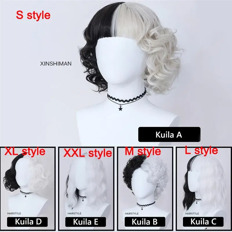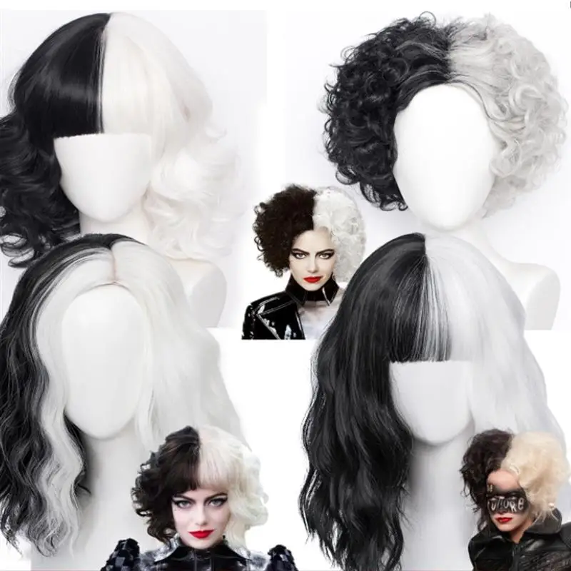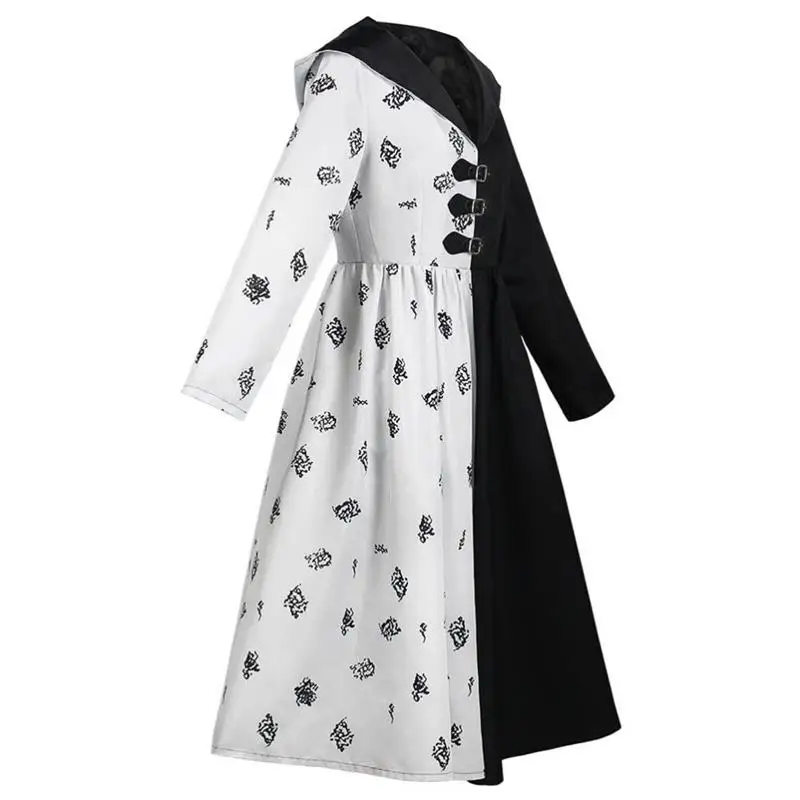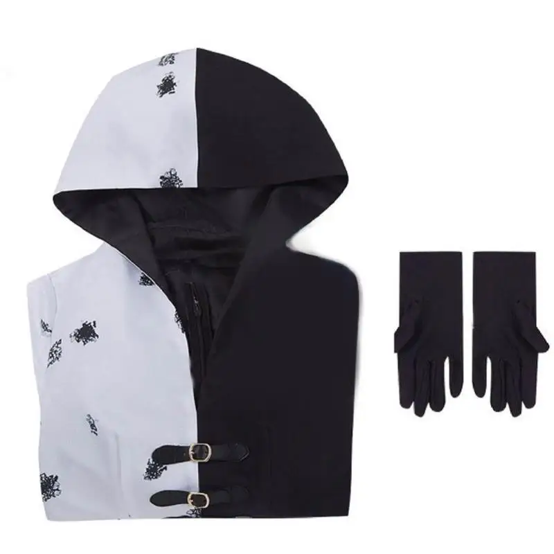 Женский костюм Cruella, костюмы для косплея, детское черно-белое платье ведьмы куилы с перчатками, костюм на Хэллоуин, костюмы для косплея