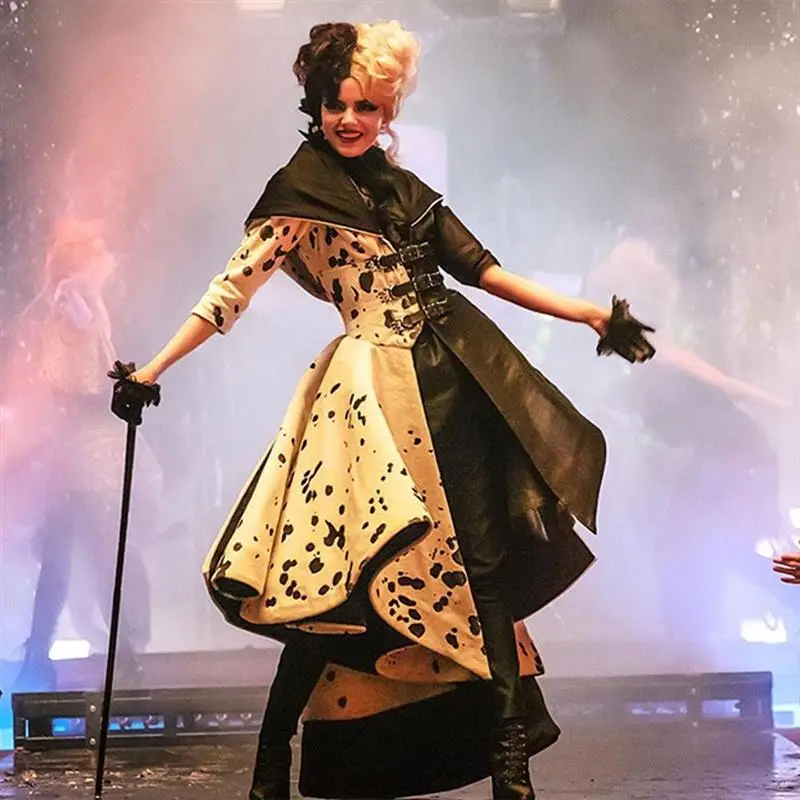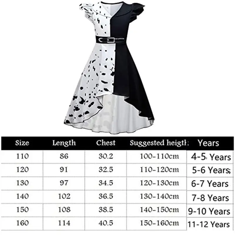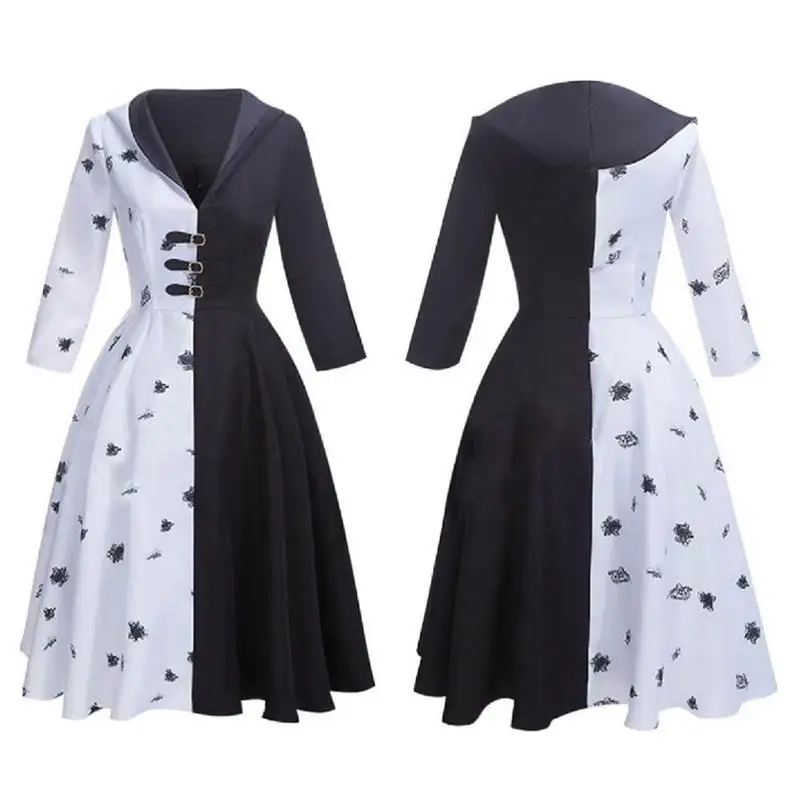 Женский костюм Cruella, детские костюмы для косплея, черно-белое платье ведьмы куйлы с перчатками, костюм на Хэллоуин, костюмы для костюмированной вечеринки