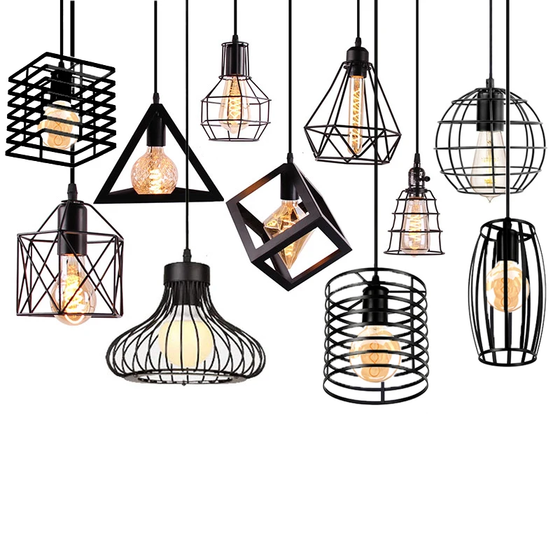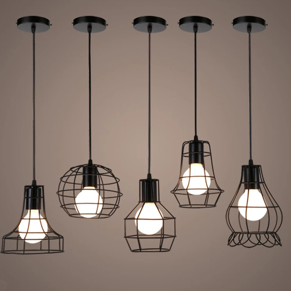 E27 современные скандинавские подвесные светильники черное железо ретро Лофт клетка Пирамида подвесной светильник американские промышленные металлические подвесные светильники