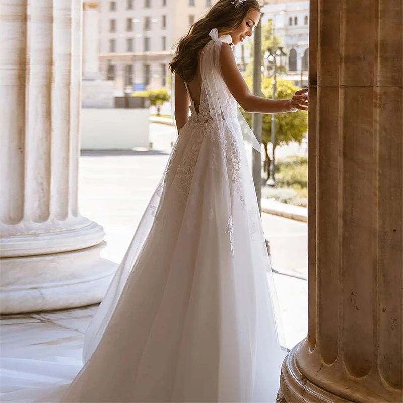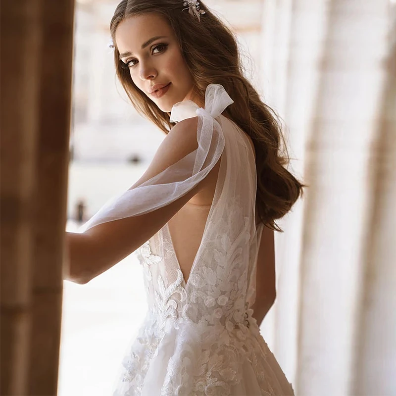 Женское свадебное платье с V-образным вырезом и открытой спиной