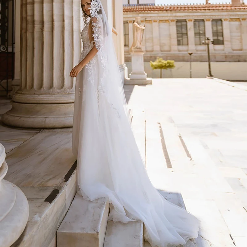 Кружевные свадебные платья с V-образным вырезом и длинными рукавами