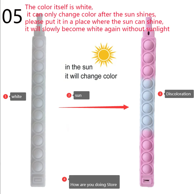Характеристики продукта:Продукт изготовлен из высококачественного пищевого силикона и получил соответствующие сертификаты проверки качества. Нетоксичный и безвкусный, и может быть очищен кипятком. Различные яркие цвета легко получить любимый для детей.При нажатии на пузырь будет слабый звук. После окончания игры вы можете перевернуть игрушку, чтобы начать следующий раунд игры.Его можно использовать для детей в возрасте до 3 лет, чтобы использовать способность ребенка захватывать предметы. Когда дети играют, они могут осуществлять свое логическое мышление и навыки расчета.