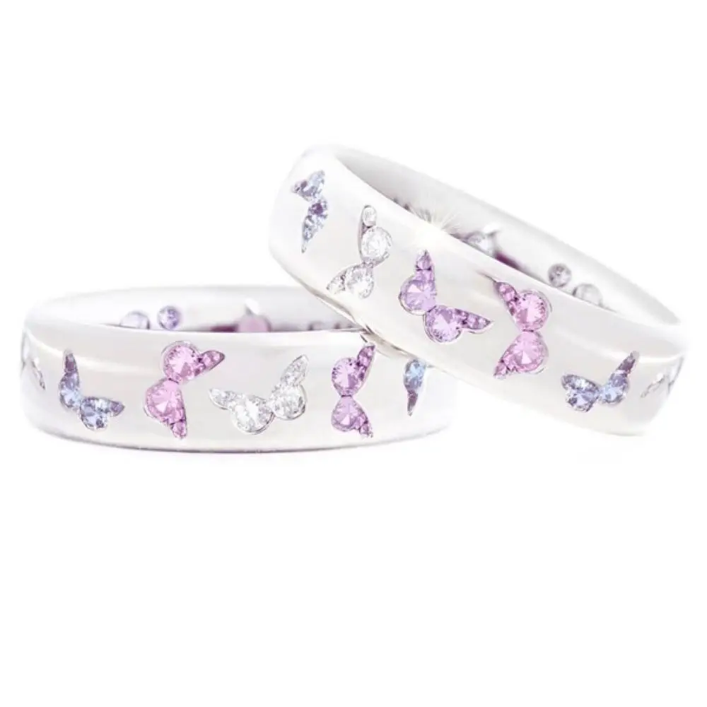 кольцо женское парные кольца кольца 2021 Кольца с кристаллами и бабочками для женщин, модное кольцо розового и голубого цвета из нержавеющей стали для девочек-подростков, отличный романтический подарок для девушки