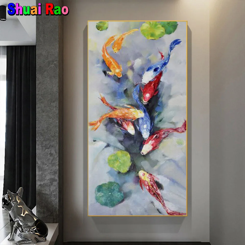 Фэн-шуй Карп картины кои Рыба Лотос Diy алмазная живопись полная дрель мозаика Алмазная вышивка рукоделие скандинавский домашний декор