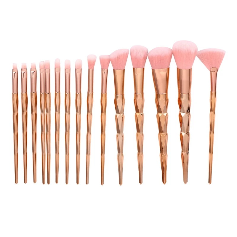 Набор кистей для макияжа MAANGE, профессиональные кисточки золотистого и розового цвета для бровей, ресниц, бриллиантовые, 15 шт.