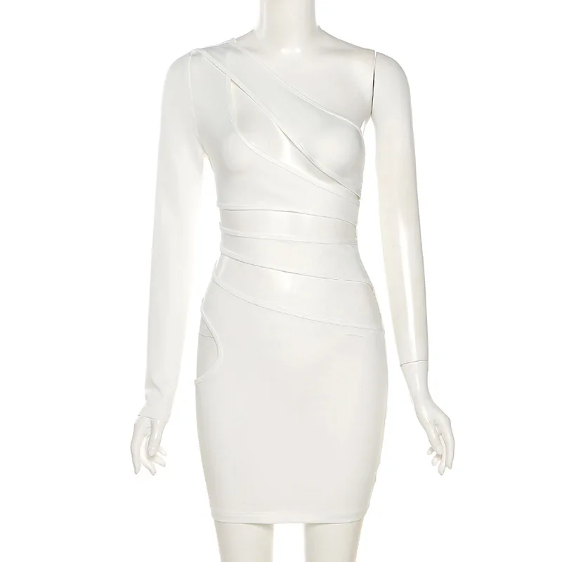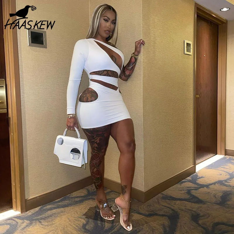 Сексуальное летнее женское платье HAASKEW с вырезами 2021 Белое Облегающее Клубное платье с низким вырезом на спине с одним рукавом Мини свадебное вечернее платье