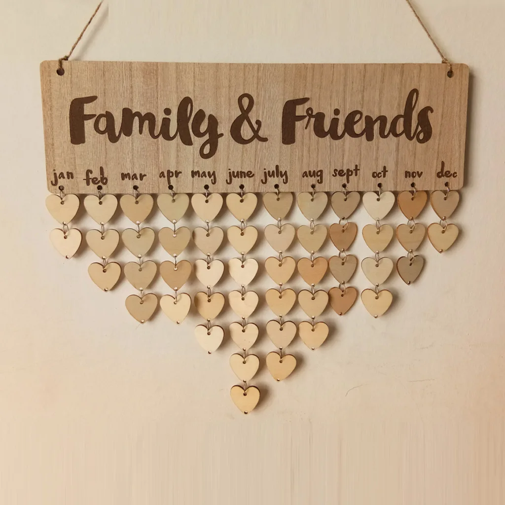 Деревянная подвесная табличка с надписью «Family Friends» и календарем на день рожденияХарактеристика:Работа «сделай сам» проста: простая система подвески позволяет легко перемещать диски без инструментов на борту. Вы можете раскрашивать вручную, как цвет, и вытягивать желаемую форму.Наслаждайтесь любовью семьи: Это будет хорошая возможность для вас, чтобы сопровождать ваших детей и семьи. Создавайте свои собственные идеи, чтобы собрать и нарисовать и создать свой собственный Семейный календарь дня рождения вместе. Это идеальное дополнение к любому блаженному дому!Лучший подарок для всех: Вы знаете все дни рождения, праздники и праздники, размещаются на доске. Мы поделились воспоминаниями, когда разместили имя на доске. И нам не нужно писать даты в календаре каждый год. Поэтому мы никогда больше не забудем день рождения или годовщину.Пожалуйста, обратите внимание: чтобы избежать попадания крови в дерево, делая названия размытыми, лучше использовать гелевую ручку или Сверхтонкий точечный маркер, такой как шариковая ручка. И деревянные Тэги пустые.