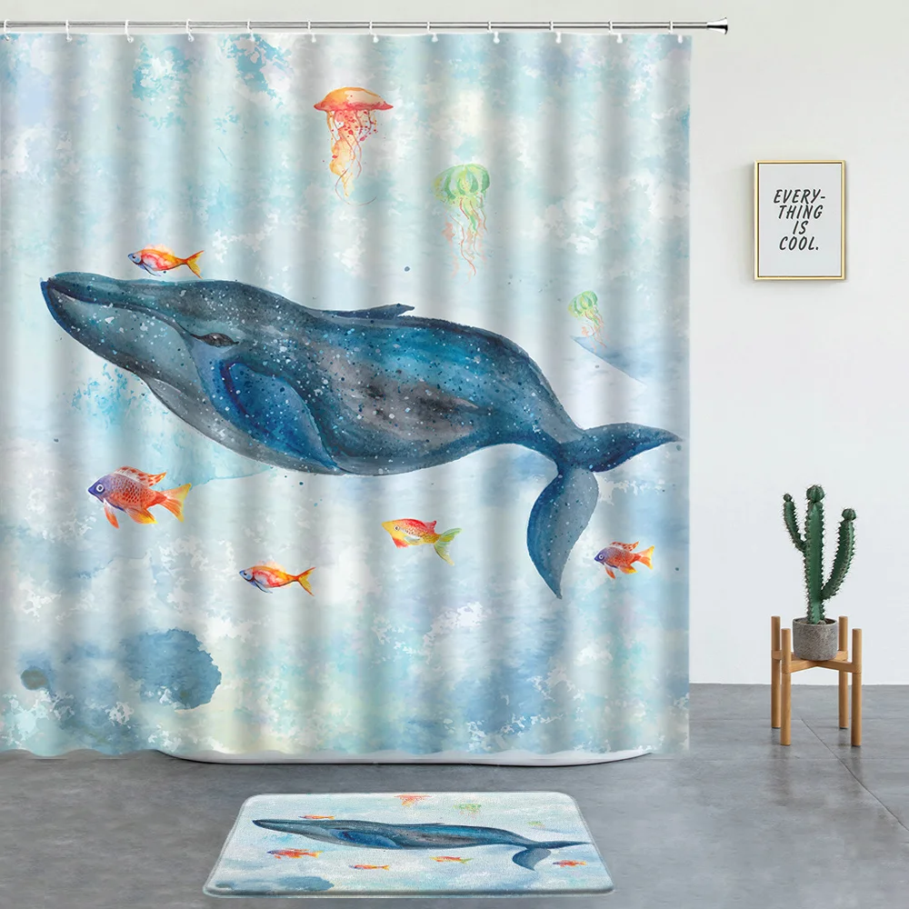 Набор занавесок для душа с рисунком Кита, Забавный океан, животное,...