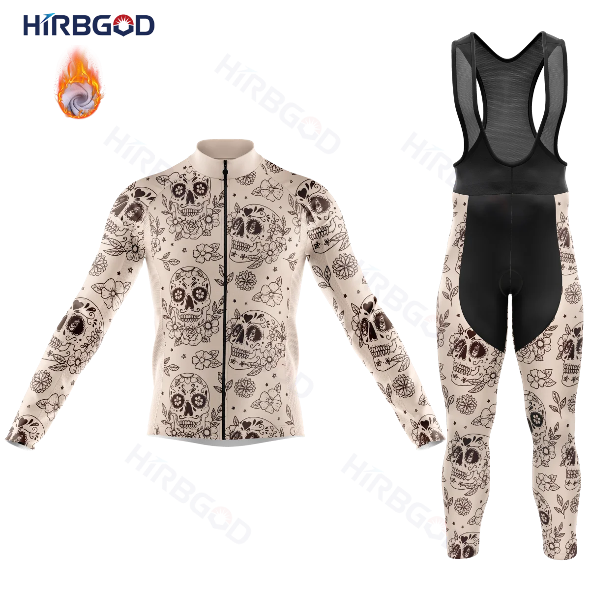 HIRBGOD/Новые мужские комплекты для велоспорта с цветком и черепом, зимний термальный флис с гелевой подкладкой, оборудование для верховой езды, комбинезон с длинными рукавами, комплект одежды