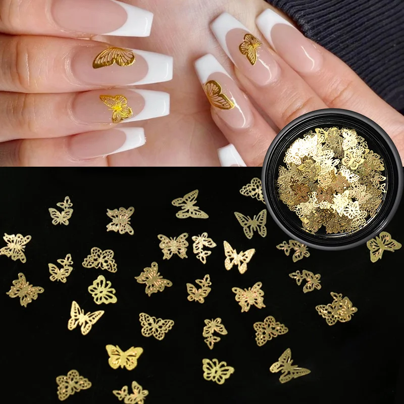Дизайн бабочки смешанные сверхтонкие полые металлические патчи снежинки DIY Ювелирные изделия украшения для ногтей металлик Блестки для нейл Арта (искусство украшения ногтей) драгоценный камень