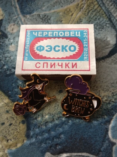 Эмалированный значок в виде ведьмы, фиолетовая, темная шляпа, медиц...