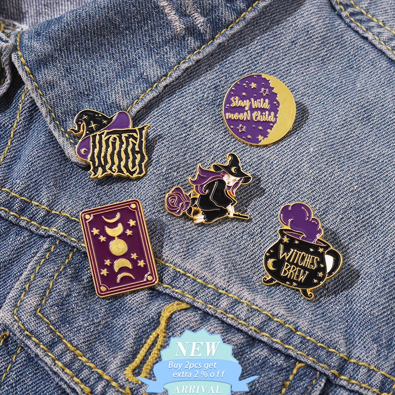 Эмалированные заколки Witch Magic World, милые значки на лацкан для...