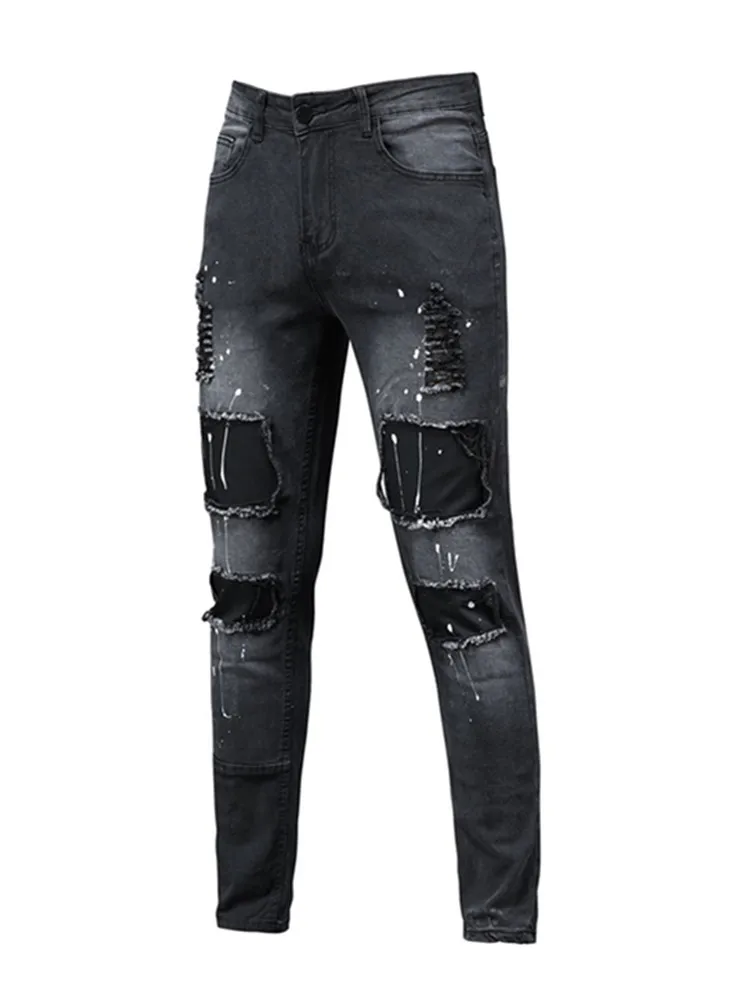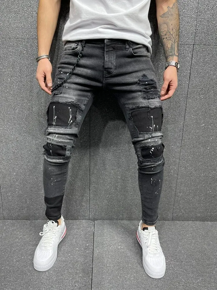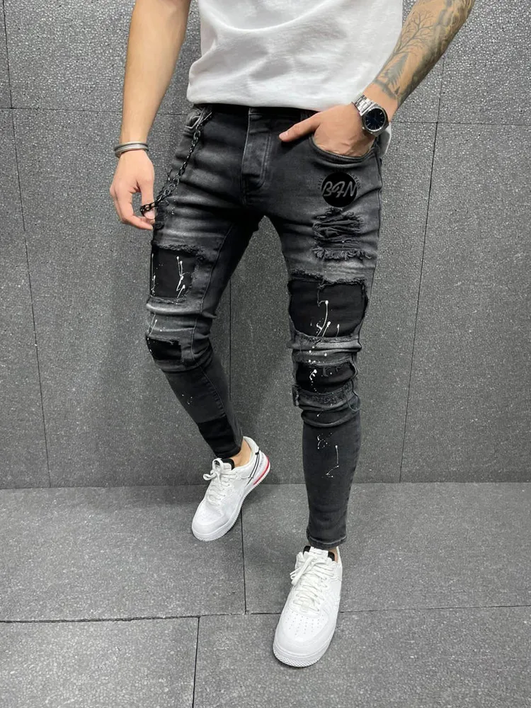 Мужские рваные джинсы скинни, черные байкерские дизайнерские сексуальные брюки с дырками, повседневные брюки-карандаш, новинка 2021