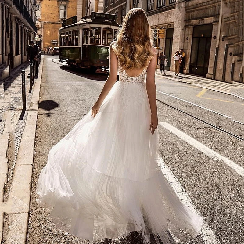 Женское свадебное платье с V-образным вырезом и открытой спиной