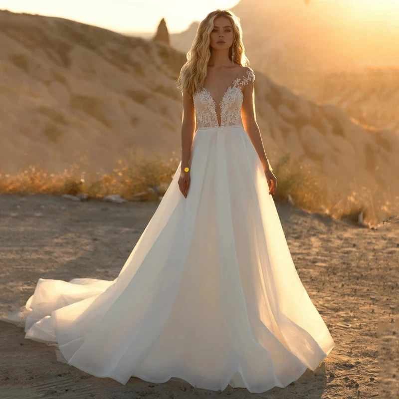Женское свадебное платье с V-образным вырезом и открытой спиной
