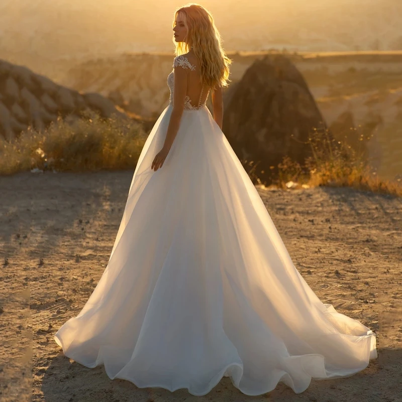Классические кружевные шифоновые современные свадебные платья а-сил...