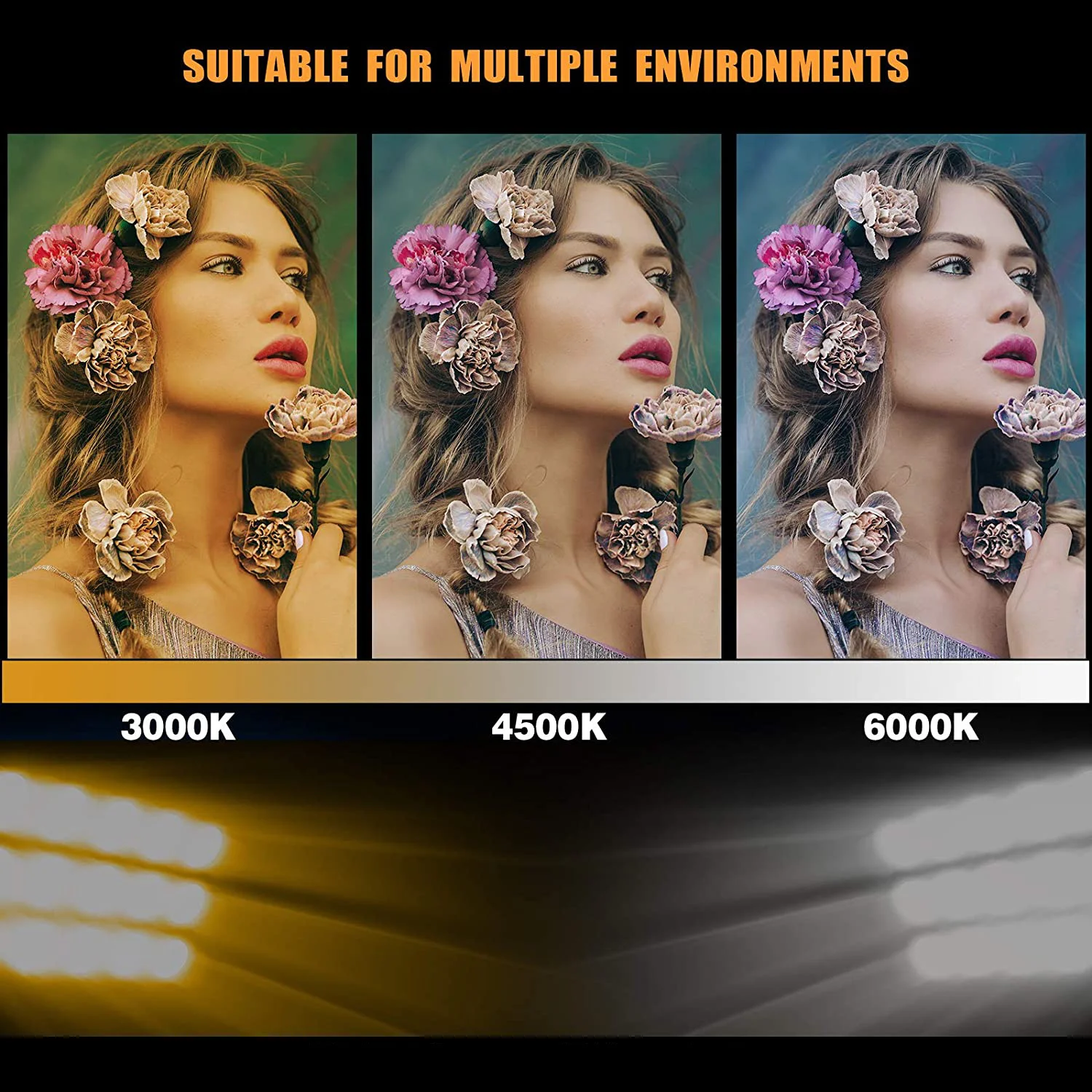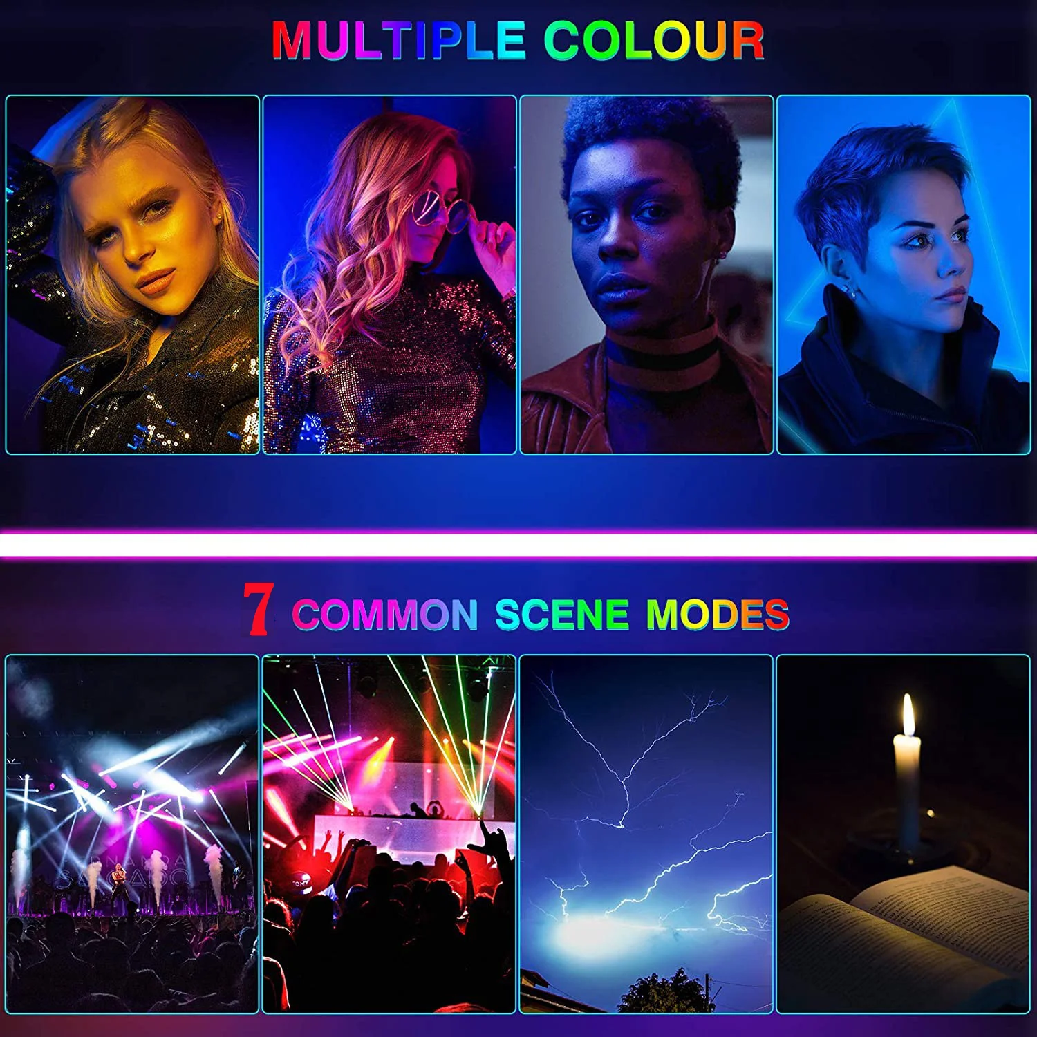 【RGB + двухцветный свет 】принятие двустороннего дизайна ламп, одна сторона-лампа CCT, другая-RGB лампы. 38 холодных белых огней + 38 теплых белых огней + 38 RGB высококачественных светодиодных ламп, поддержка режима CCT 3000K-6000K широкий диапазон регулировки цветовой температуры; 360 ° полные цвета, оттенок, яркость регулируется.