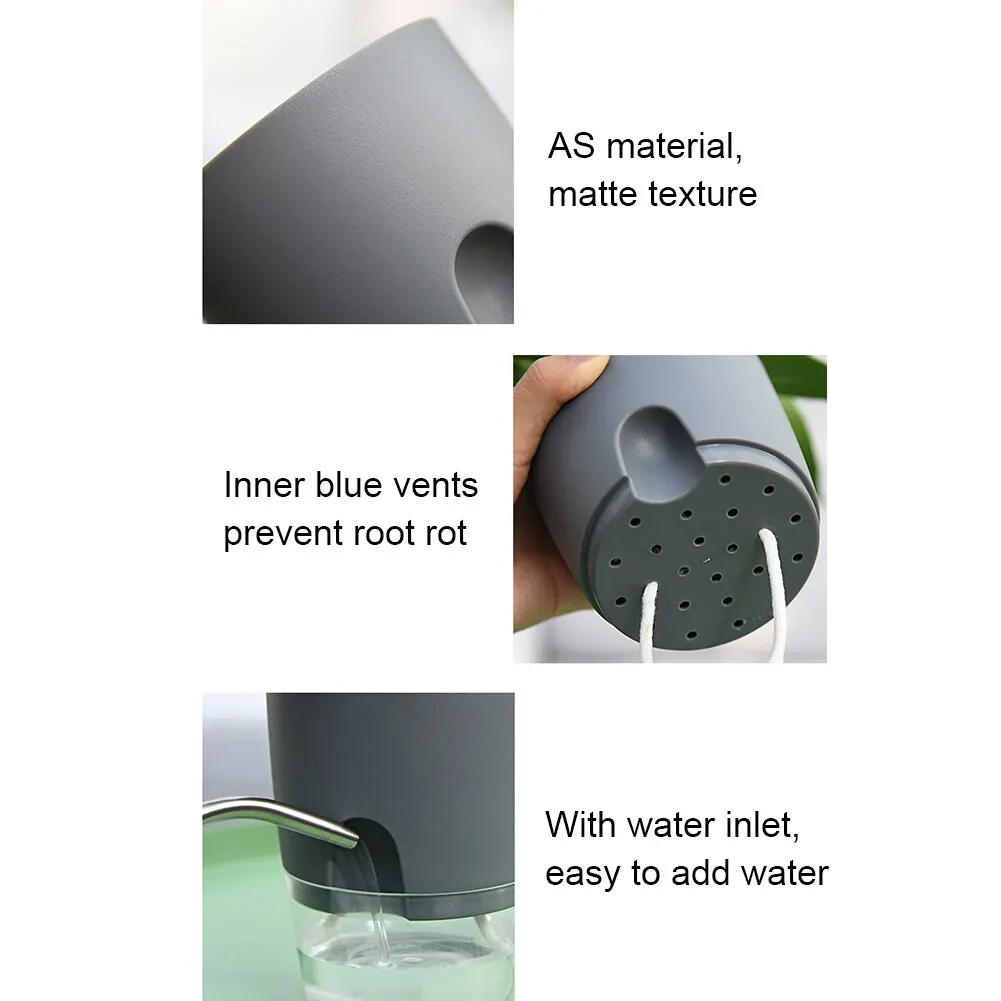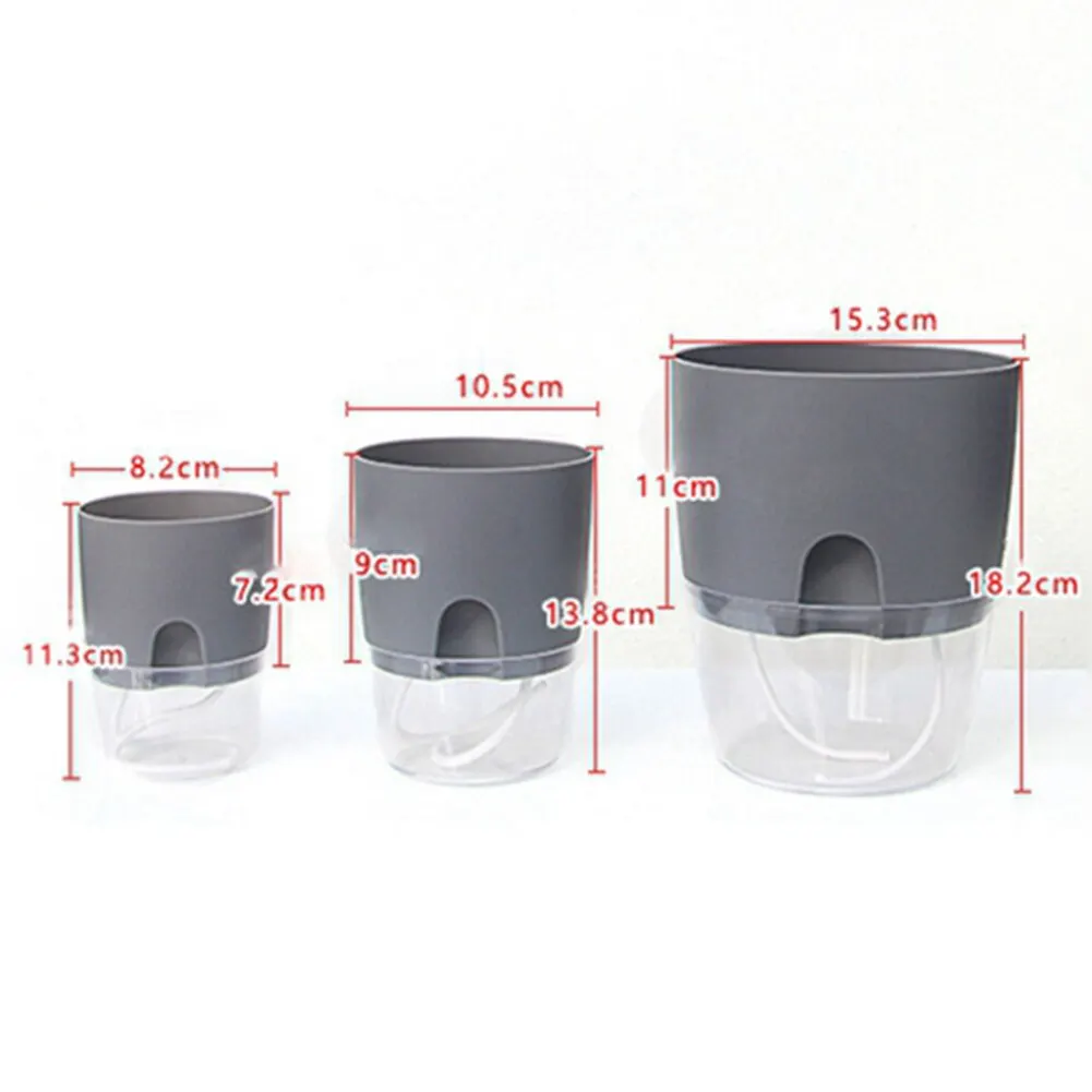 Особенности1. Изготовлен из полимерного материала, он прочный и легко чистится.2. Верхний слой имеет высококачественную матовую текстуру. Нижний слой-это прозрачный контейнер для воды, который позволяет наблюдать за состоянием воды.3. Разработан с хлопковой веревкой для поглощения воды для достижения самополива.4. Есть дышащие отверстия для предотвращения поломки корней. Добавьте воду между 2 слоями, ее удобно добавлять в воду.Спецификация:Материал: смолаЦвет: серый, белыйРазмер: 15,3*15,3*18,2 см 10,5*10,5*13,8 см 8,2*8,2*11,3 смПосылка включает в себя:1 * цветочный горшок