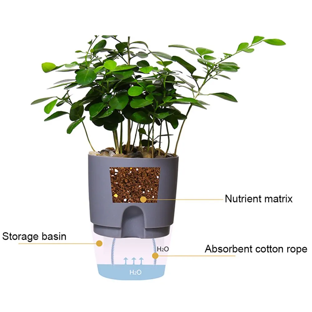 Цветочный горшок с системой полива ручная работа, 2-слойный самополивающийся цветочный горшок с контейнером для воды, круглый цветочный горшок, украшение для дома и сада