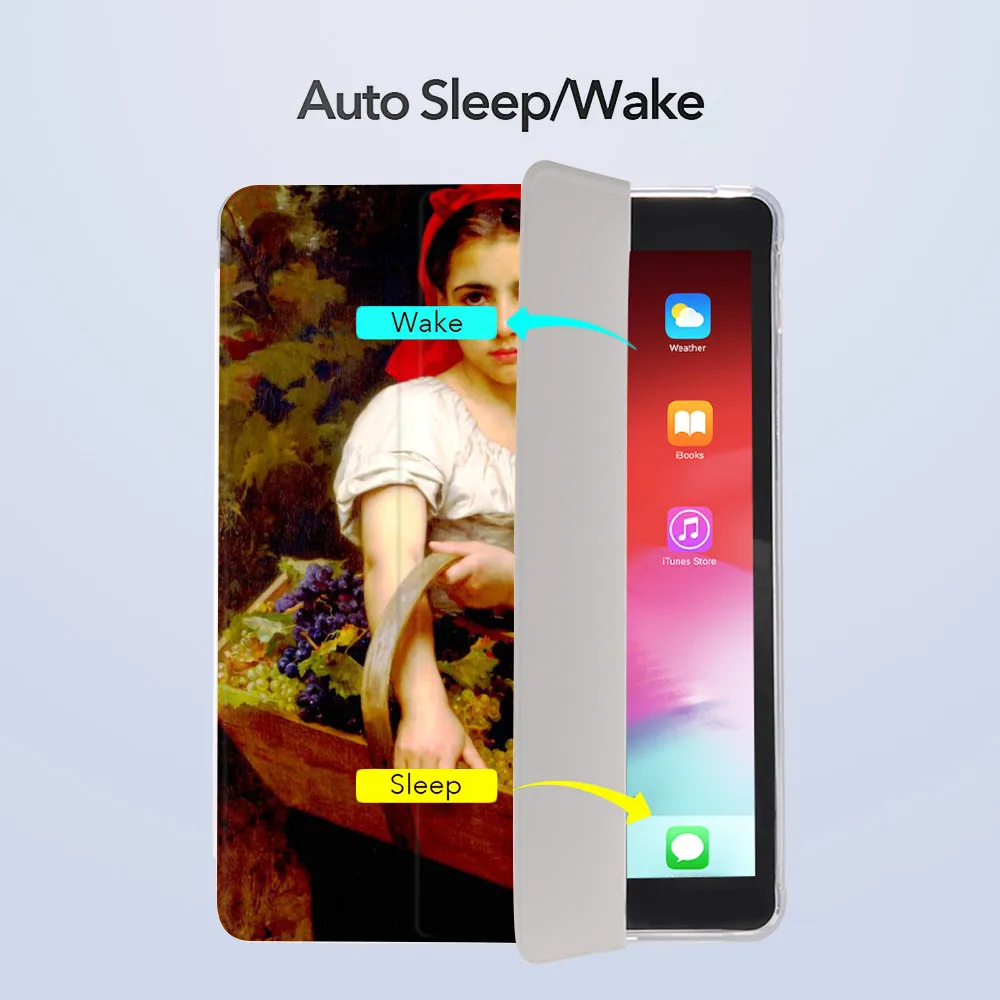 Особенность: с поддоном для карандаша для ipad удобно использовать карандаш для ipad.1. Передняя часть изготовлена из высококачественной искусственной кожи, задняя крышка изготовлена из мягкого силикона, который удобен на ощупь.2. Полностью защищает ваш ipadas, идеально подходит.3. Грязеотталкивающий, пыленепроницаемый и моющийся.4. Высококачественная печать, четкие узоры.5. Несколько функций, функция сна/пробуждения, может использоваться в качестве подставки для ipad.Хорошо продуманный, просто для более удобного использования.