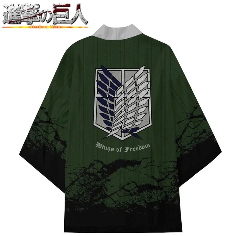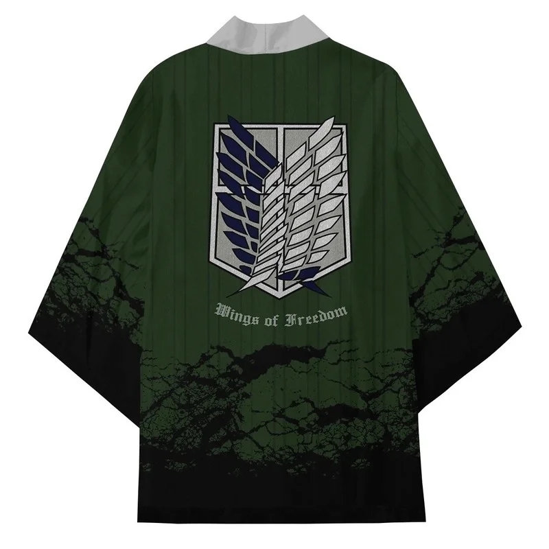 Пальто-кимоно для косплея атака на Титанов, зеленый костюм унисекс для косплея с крыльями свободы, аниме на Хэллоуин