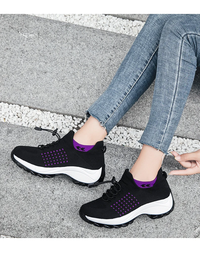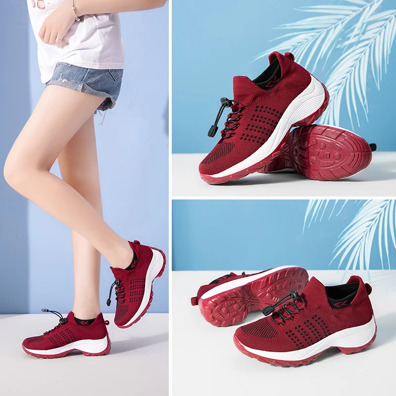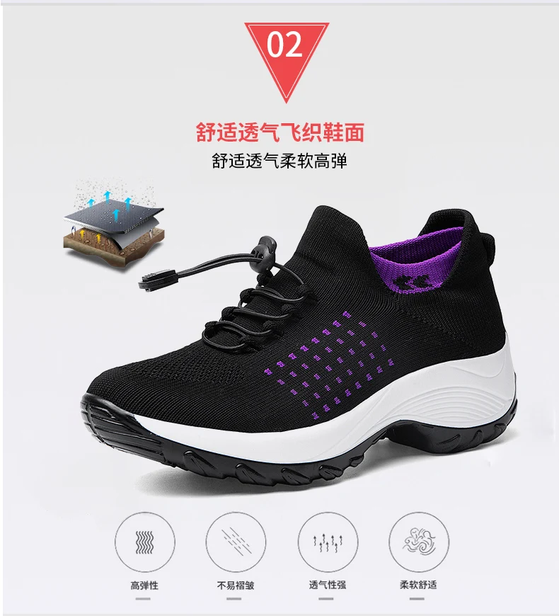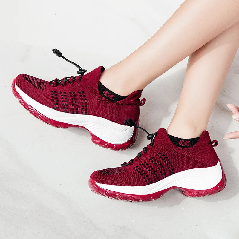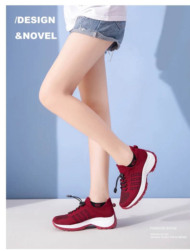Женские Эластичные летающие плетеные дышащие носки, Уличная обувь, увеличивающая рост, Вулканизированная обувь, легкая повседневная обувь на подошве MD