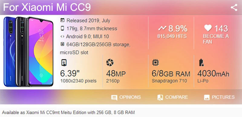 Номер моделиFor Xiaomi CC9 MI9 Lite/A3 LITE