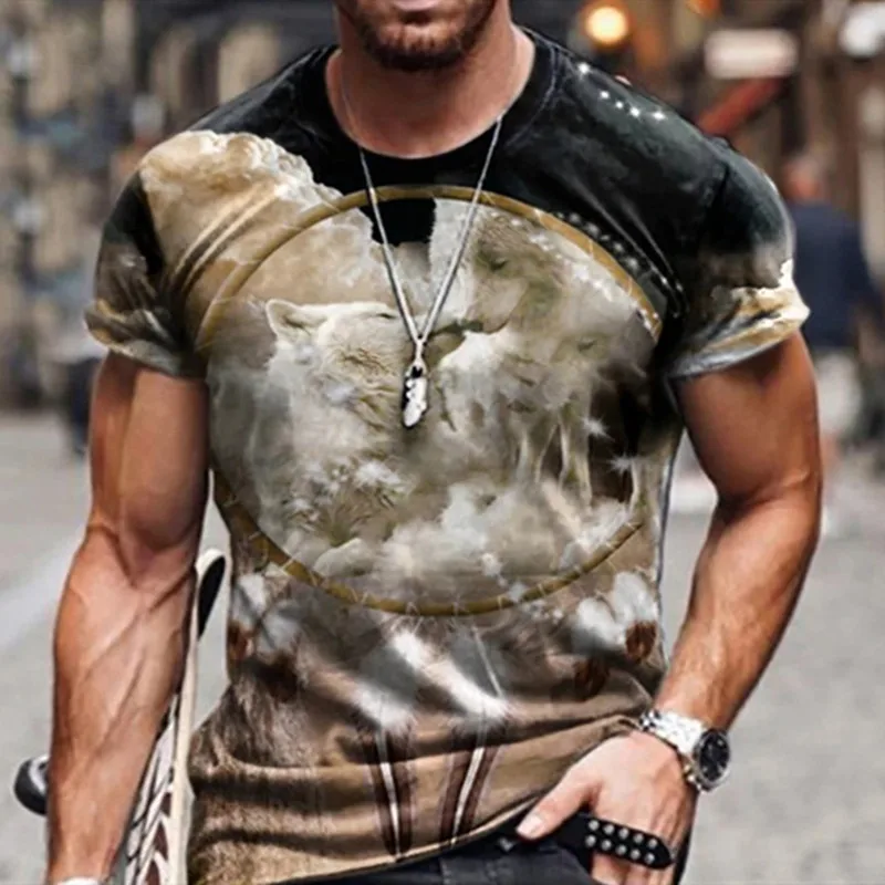 Футболка мужская оверсайз с круглым вырезом и 3D-принтом волка
