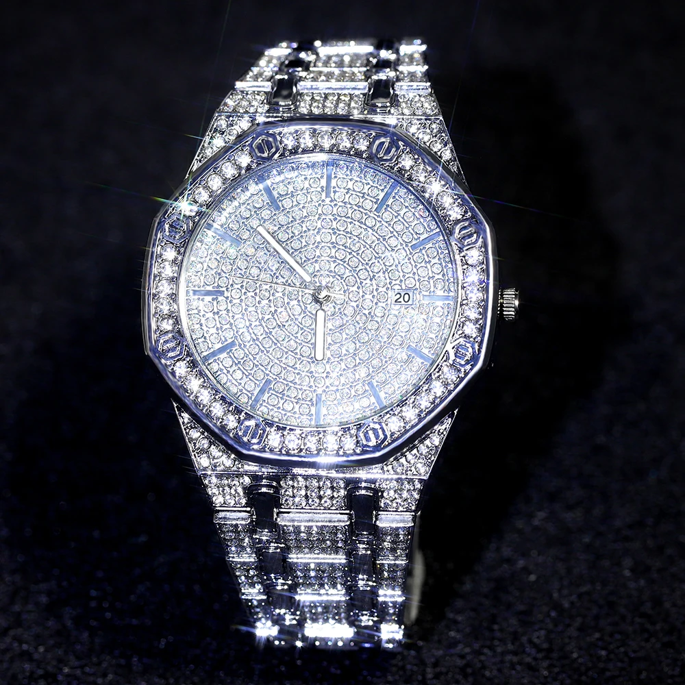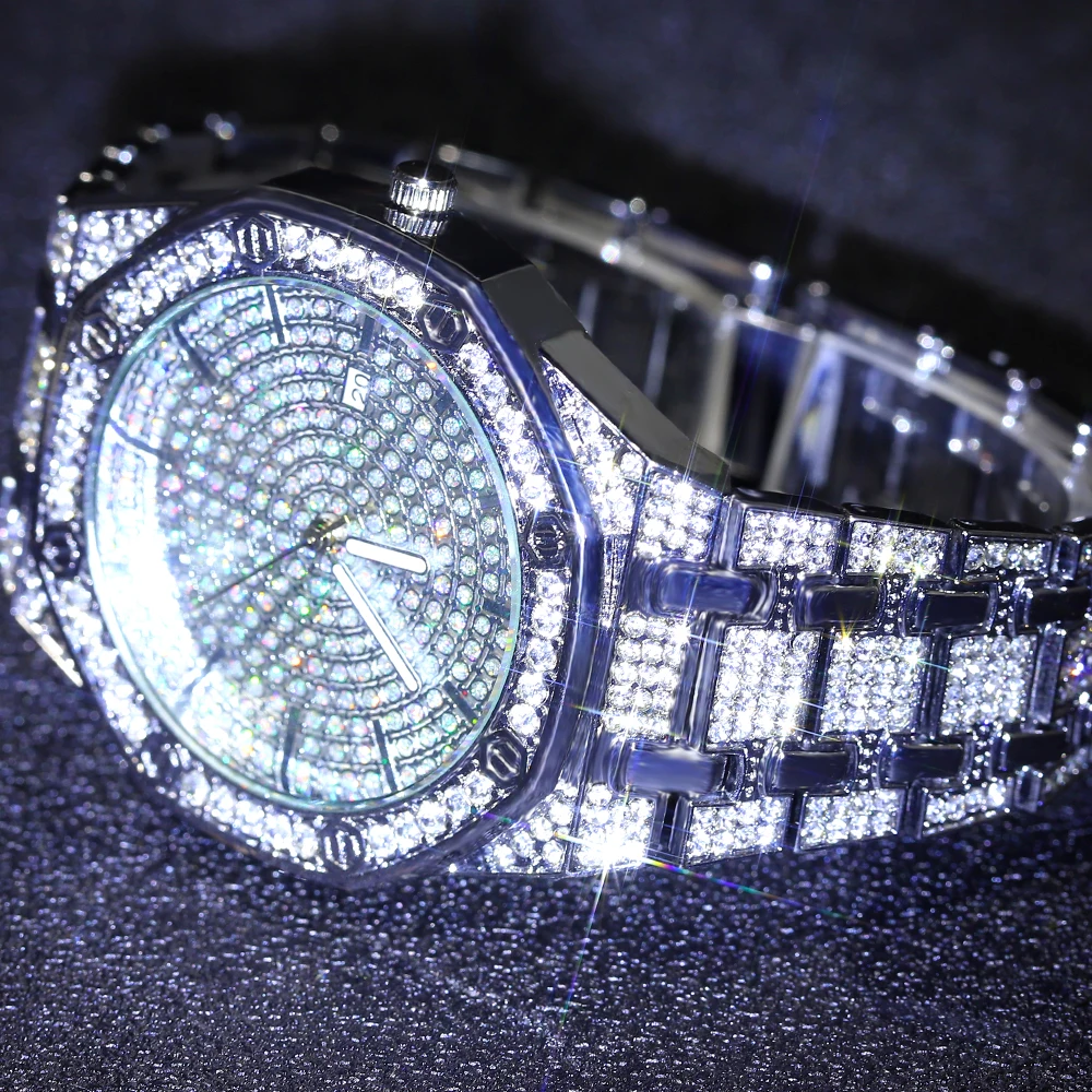 Часы наручные мужскиеженские кварцевые со стразами, в стиле хип-хоп